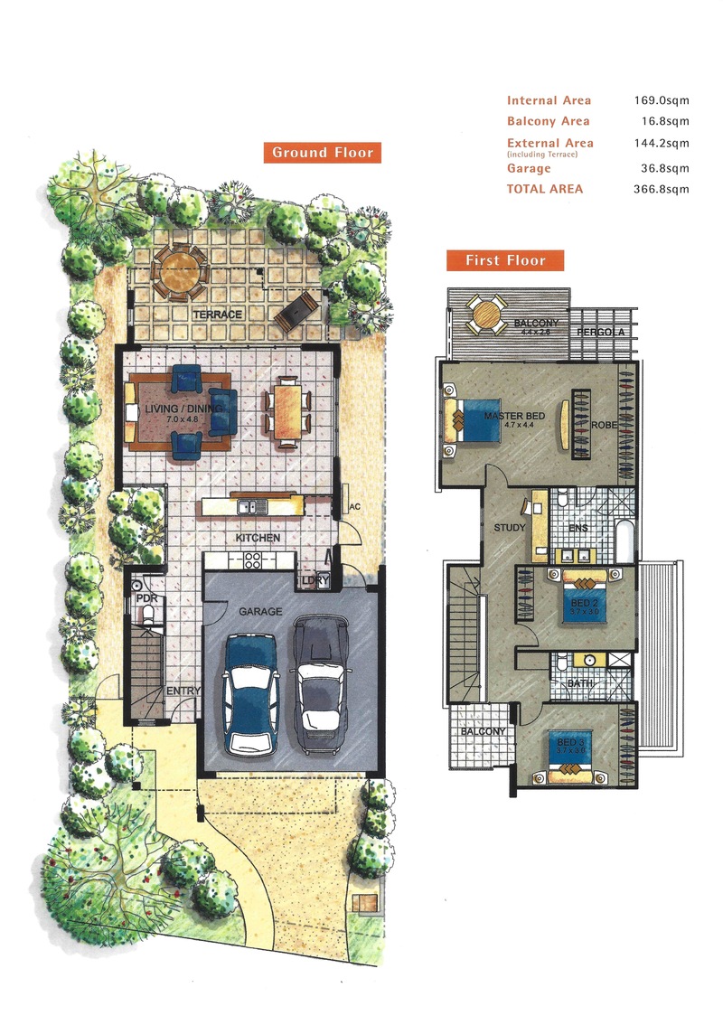 The villa offers 3 large bedrooms on the upper level. Master bedroom has double walk through robes and a large ensuite plus a private large balcony.The 2 other queen size bedrooms share a bathroom and another private balcony.