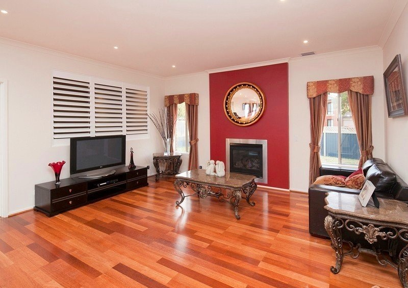 Features include high ceilings, ducted heating, ducted vacuum, deluxe spa, timber front door, select timber floors, top of the range silk carpet, quality curtains/pelmets, split system air conditioner and double garage with remote.