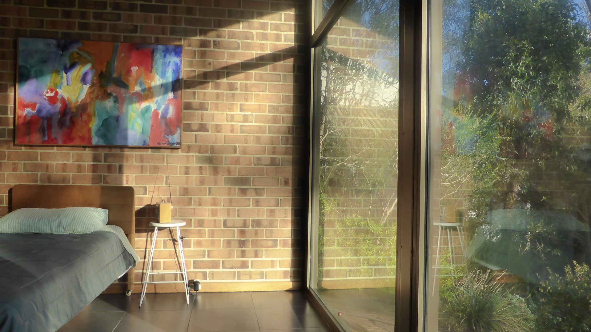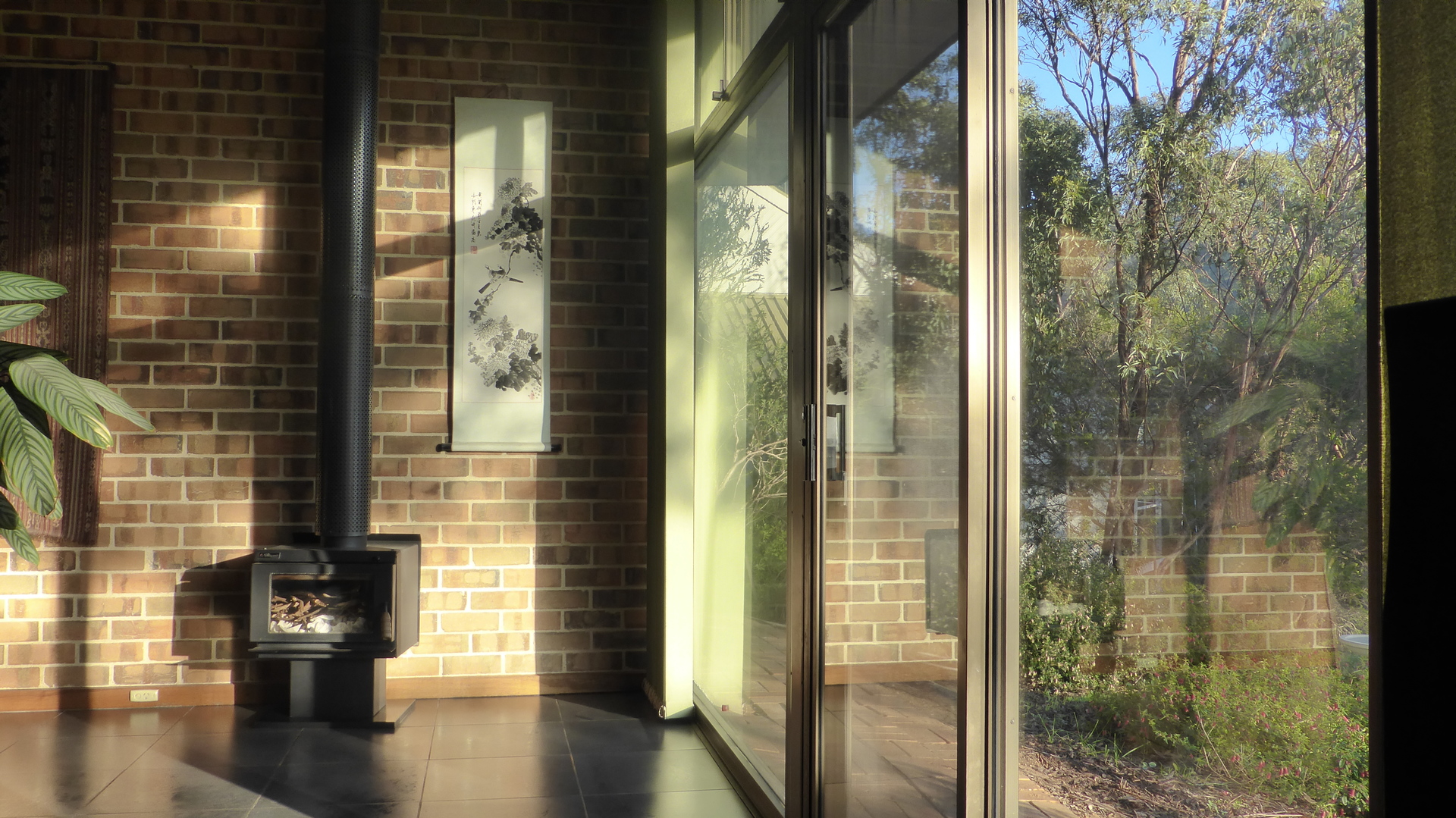 Solar des. dble. brick home with dble glazing. Bright, warm in winter cool in summer. Modernist (Mies van der Rohe) style, 3br., 2 bath, study, Walk-in-robe, dble. glazing, recently replaced solar HWS and pv panels with 54c feed in tariff (stays with house), r/c air con., combustion heater. Lovely floor to ceiling treed views all across the north, barely a house in sight! Quiet area (no through street), huge park nearby, pleasant walk to Blackwood shopping centre and public transport, 11km to Adelaide CBD.
