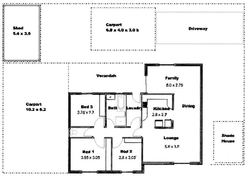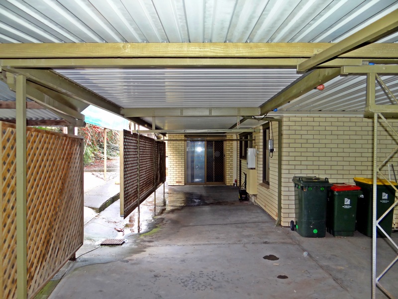 Large enclosed carport able to house 4 vehicles, and a separate, extra high carport with driveway, ideal for motor home/ caravan etc.