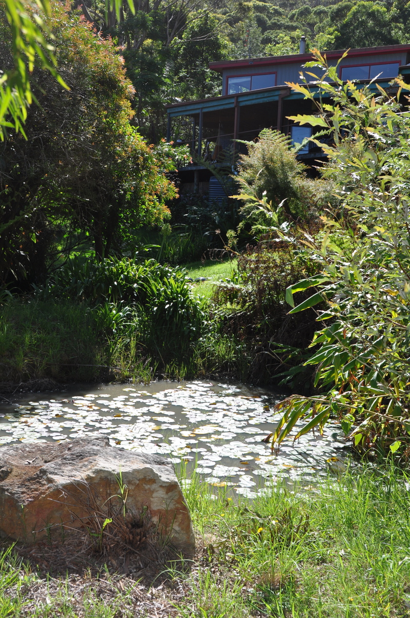 orchard with lemon, orange and lime and macadamia; lychee and coffee trees; large established vegie garden; 2x5000ltr tanks; yabbie and lilly pond; native gardens; petanque/boule area; generous open spaces ( suitable for pool and/or tennis court?-stca) landscaped with dry stone wall terraces.