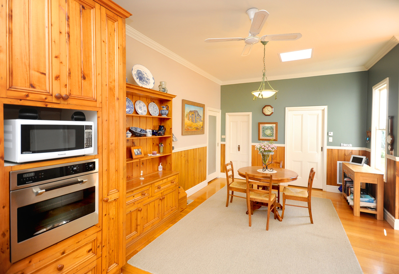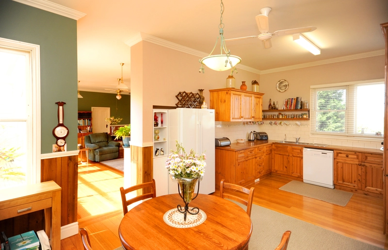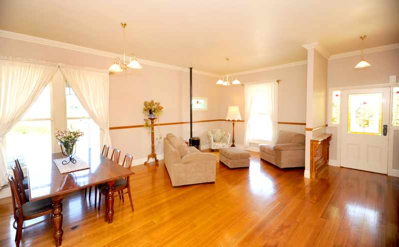 A study/office, fully appointed kitchen/dining, high ceilings ducted, gas and wood heating,split system cooling feature in this home. With a large decked outdoor area at the back and a front and side verandah, all rooms of this family home have a stunning outlook to gardens.