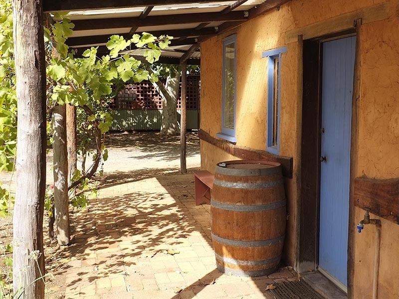 Other buildings on the property include a one-bedroom cottage with a lovely light, open living space and terracotta tile floor. There are also large sheds, one of mud-brick for vehicle parking and another for storage and workshop.