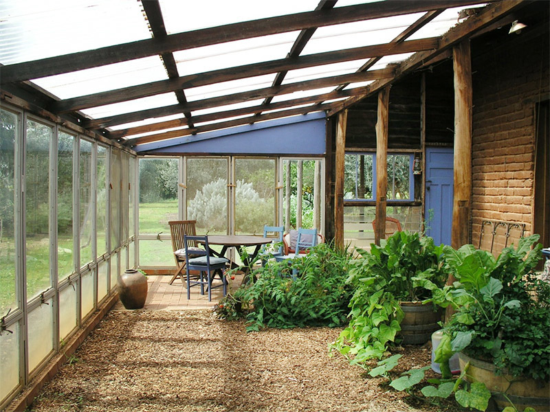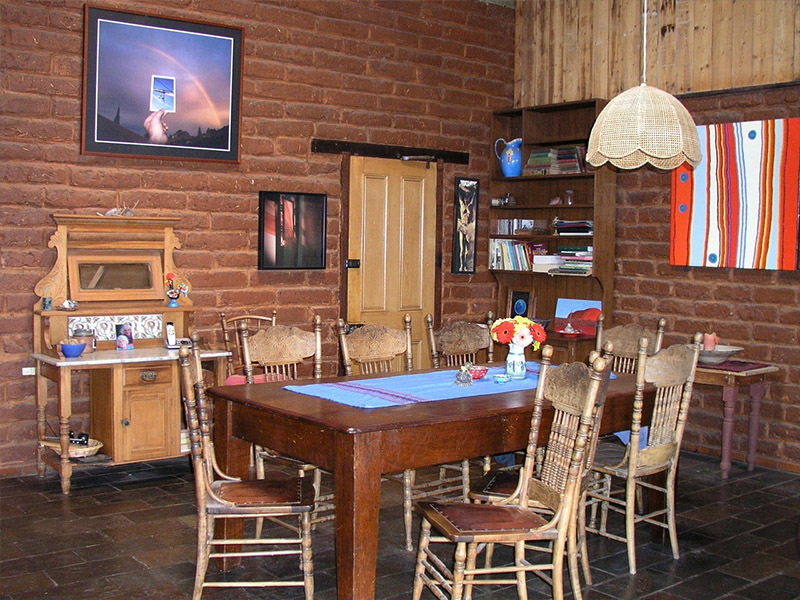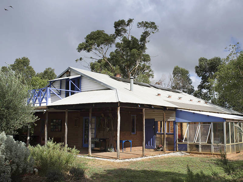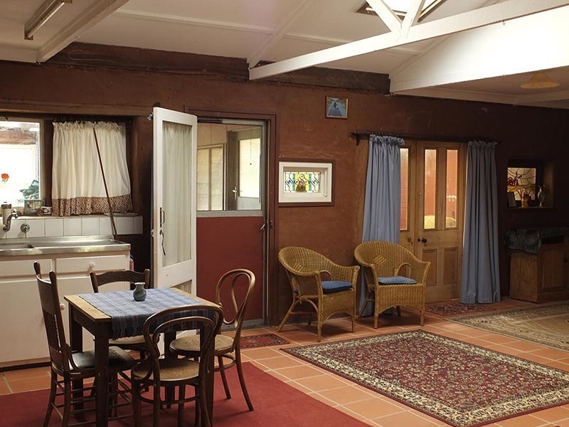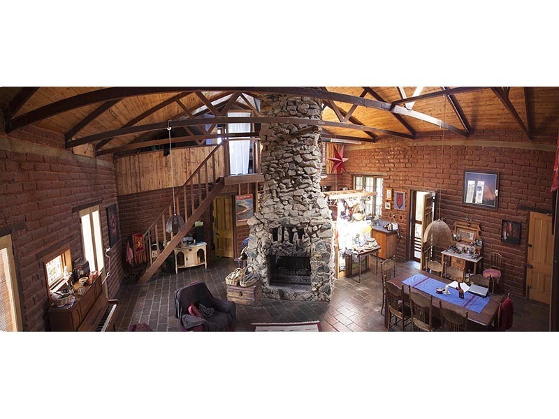 Two hand-built residences, the main house of passive solar mud-brick design with vintage recycled materials... baltic pine ceiling, jarrah floorboards, oregon doors and leadlight windows. A glass-house on the north side for winter living, solar electricity, large open fire, slate floor, cellar and two mezzanine lofts for sleeping or perhaps an art/craft/music studio.