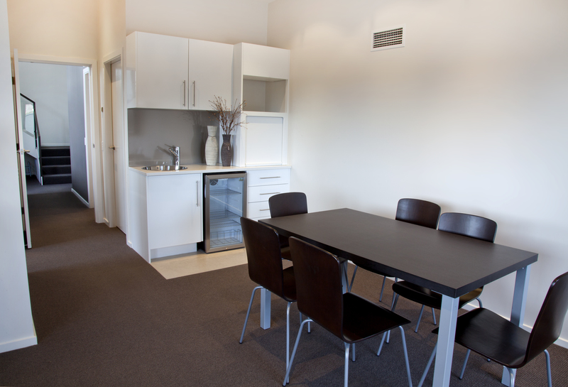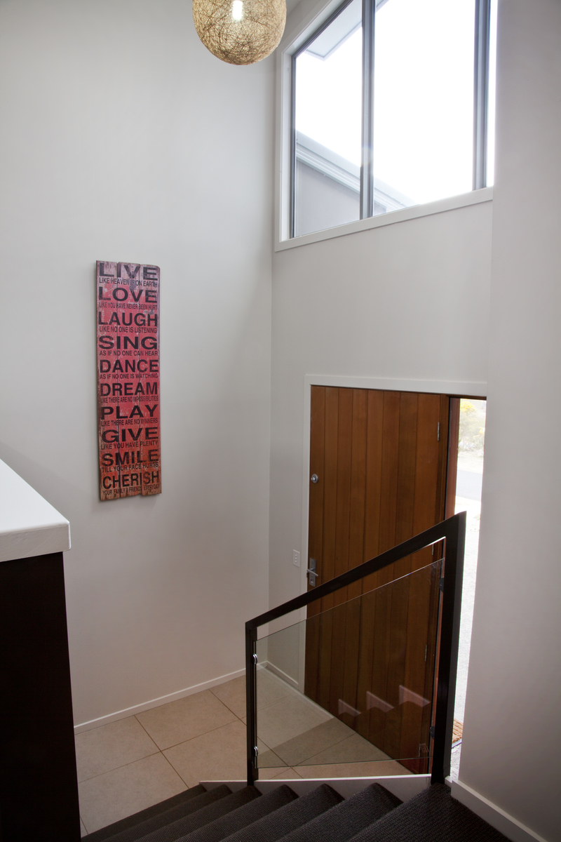 The large island bench is the hub of the home. Next to the kitchen is the dining room, which currently is being used as a playroom as a personal preference.