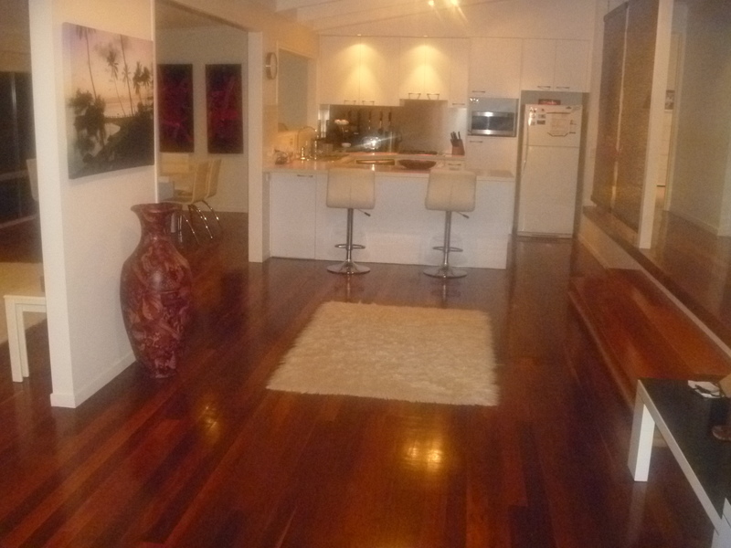 Split level open plan 1st.floor with polished hardwood floors