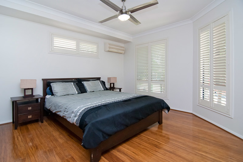 Master Bedroom with ensuite, Bamboo flooring, air-conditioning and walk-in robe with custom-built storage design
