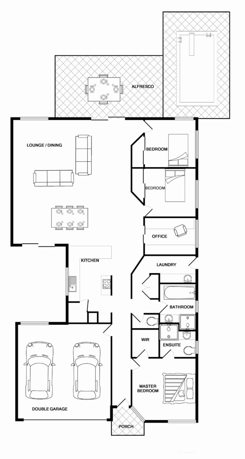 This single level, 210m2 floor plan offers a sense of space aided by the generously proportioned living space that is the heart of the home with a combined living, dining and kitchen that seamlessly meld together.