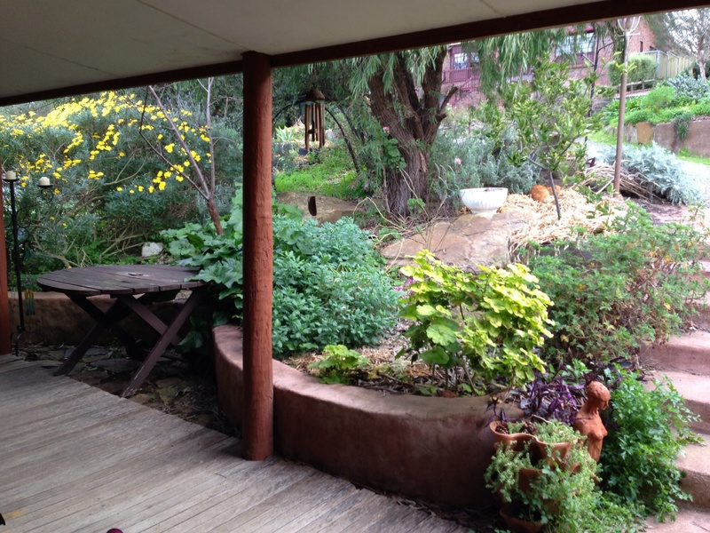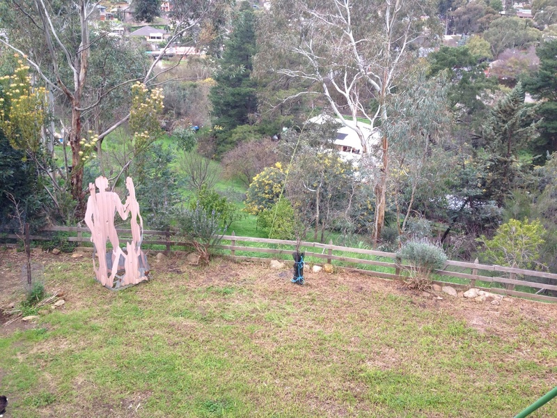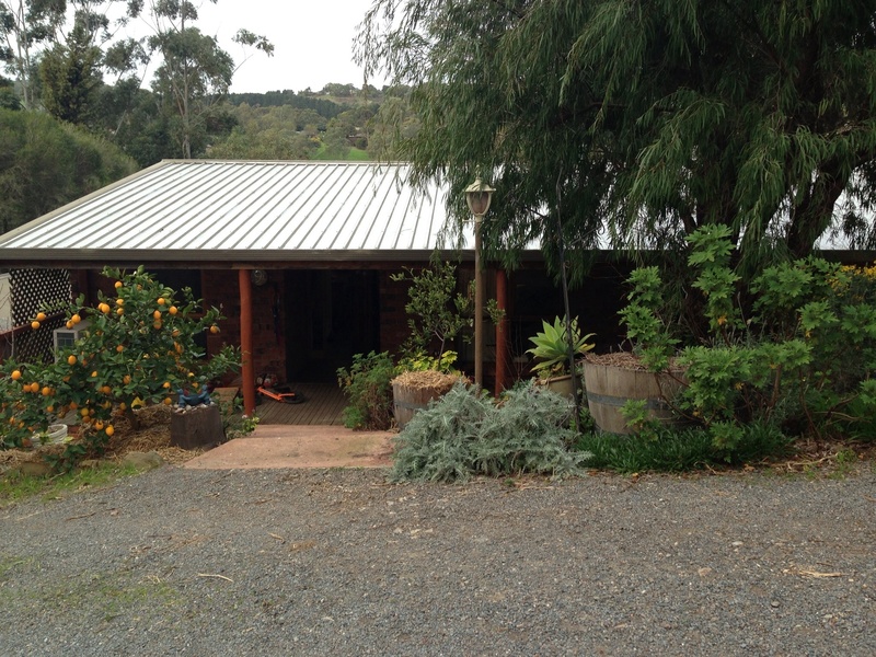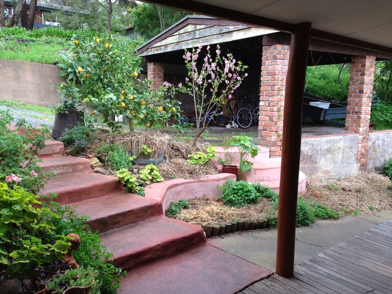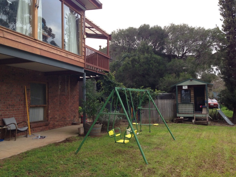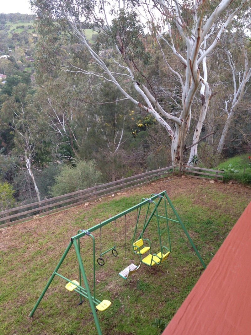 The garden is organically grown, with fruit trees including peach, nectarine, apple, lemon, mandarin, lime, orange, grapefruit and a seedless red grape vine, as well as veggies and herbs -- and some weeds. There is a cool cubby for kids & a great lawn for playing or entertaining. The lawn isn't at its best right now as the chooks have dug it up a bit - nothing a couple of weeks without avian vandals won't fix. The land below provides a natural landscape, adding to the beautiful view.