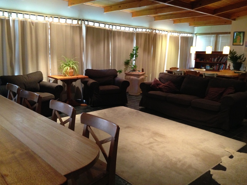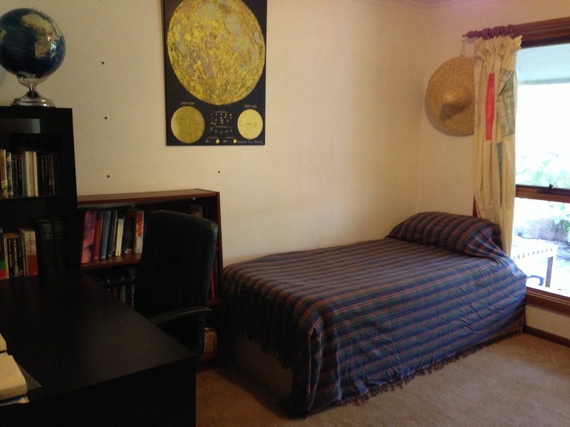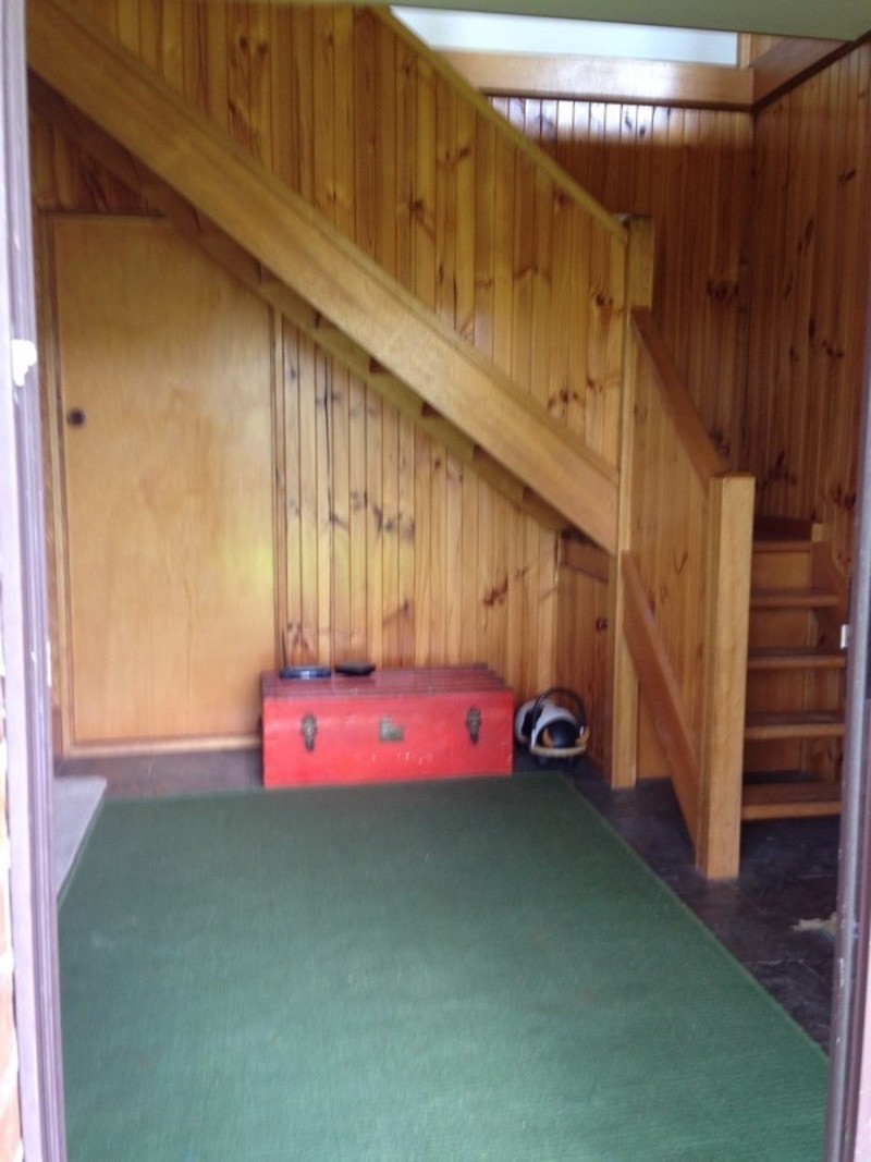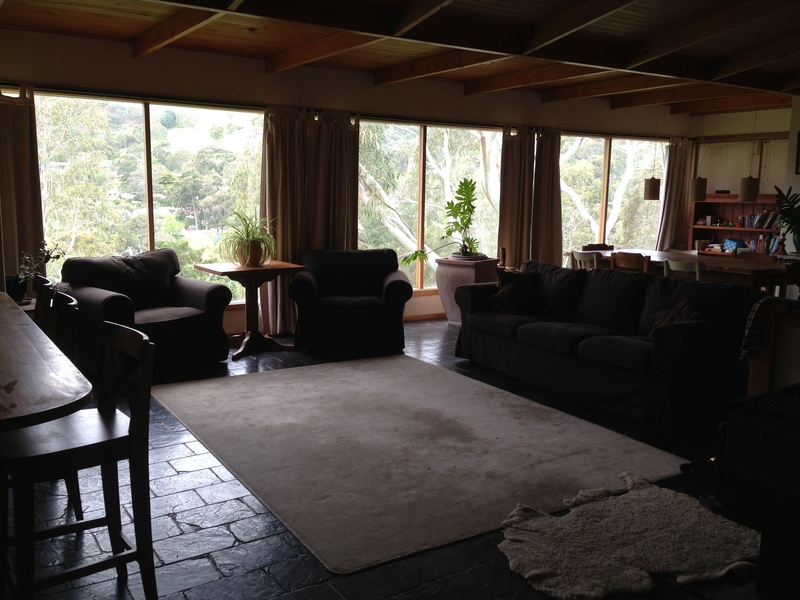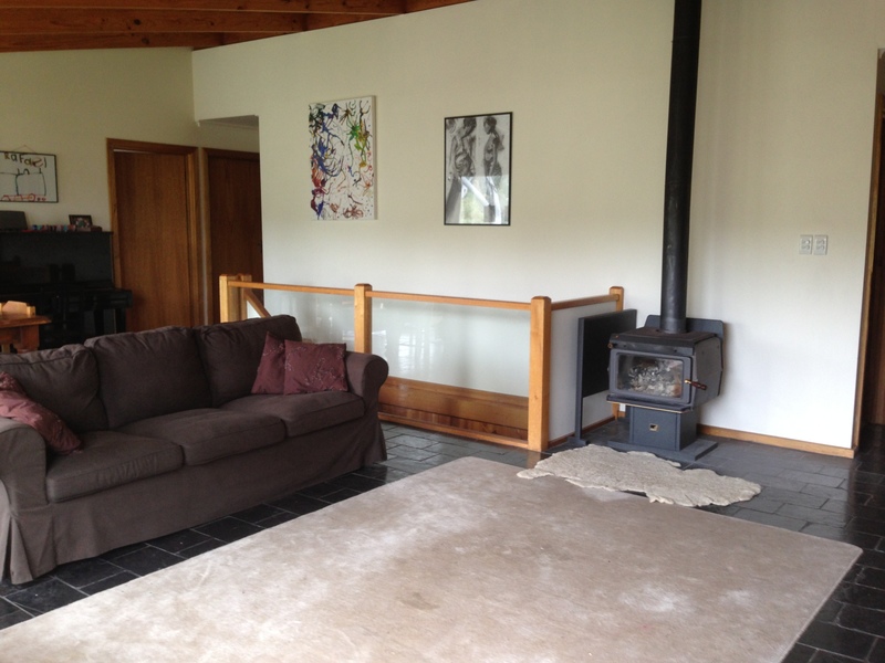 Three bedrooms, one bathroom. Street/entry level is upstairs, where the living room, kitchen and bedrooms are. Open plan kitchen/living with high wood ceilings, slate floor and white walls - great feeling of space. The view from the open plan living area is stunning. It's so calming and is a main attraction of the home. Powerful new wifi controlled air conditioner put in this year - you can bung it on via your phone half an hour before you leave the beach and have the place cool when you get home. A slow combustion heater keeps you warm in winter.