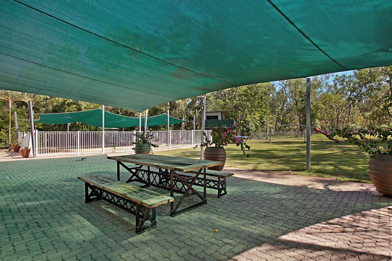 Two large paddocks have improved pasture and chain-mesh fencing for hobby farming, and a third rear paddock is a microcosm of NT flora and fauna. Gardens and lawned areas are landscaped and automatically reticulated by the property's bore, assuring the new owner of an easy-care block. Solar hot water is provided.