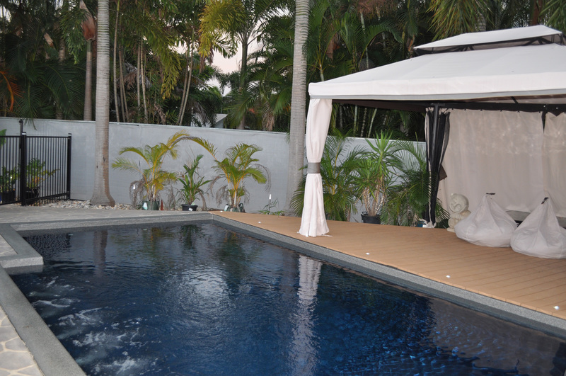From the kitchen you catch the first glimpse of the extensive outside entertainment area, complete with built in bar (with a plumbed in beer keg system), surround sound stereo and a 50" Plasma TV, to ensure that you can watch the cricket or football from the deck beside the massive in-ground saltwater pool. To ensure that there is time to enjoy all that this property has to offer, the gardens and lawn are taken care of thanks to the fully reticulated sprinkler set-up. Night times offer the best view of the tropical pool area and gardens courtesy of a low voltage lighting arrangement and in deck lighting surrounding the pool.