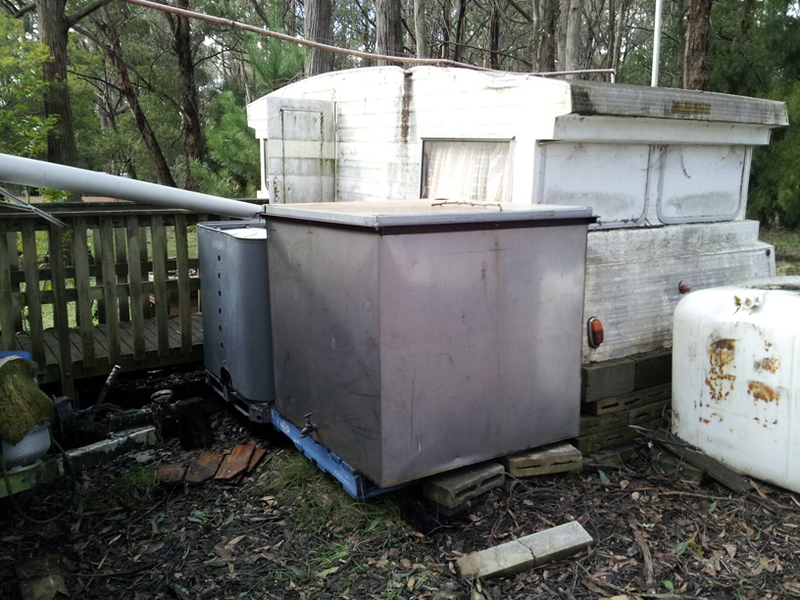 Powered and plumbed, with hot shower, toilet & tank water service.