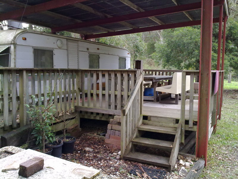 Setup with 2x permanent caravans joined by a large raised verandah (pictured).