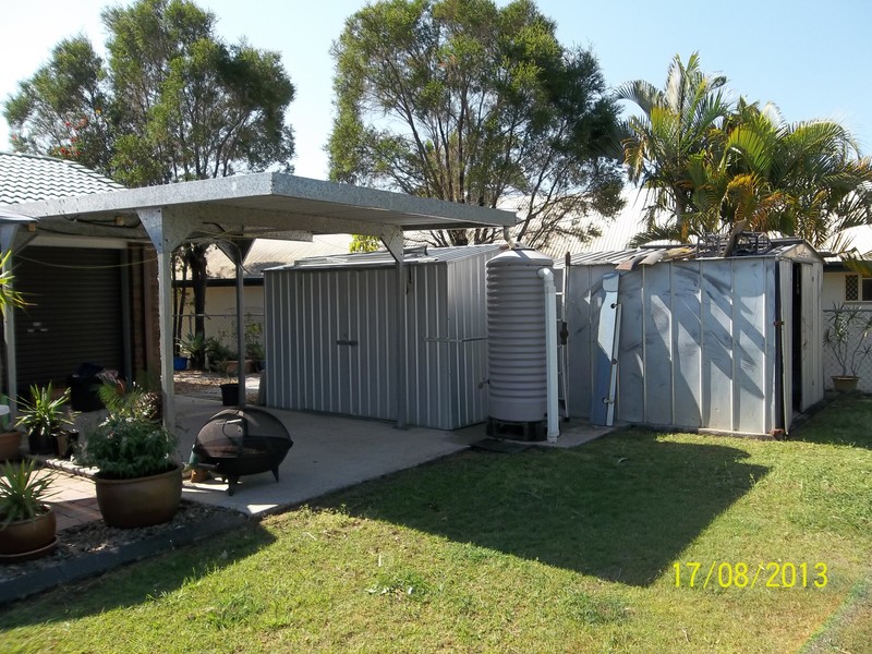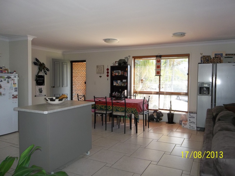 Brick and Tile home with Open Plan Kitchen Dining Lounge Floors Tiled throughout westerly Windows Tinted Pump In Ceiling Insulation Family room Ensuite to Main Bed Pool area Legally Fenced for an above ground Restored Roof 8 Solar Panels Drive Through Garage roller door front and back 2 Garden Sheds Water Tanks 1x3000 1x500 Fully Fenced back yard New Golf Course being built within 15 mins Major Shopping Complex within 15 mins