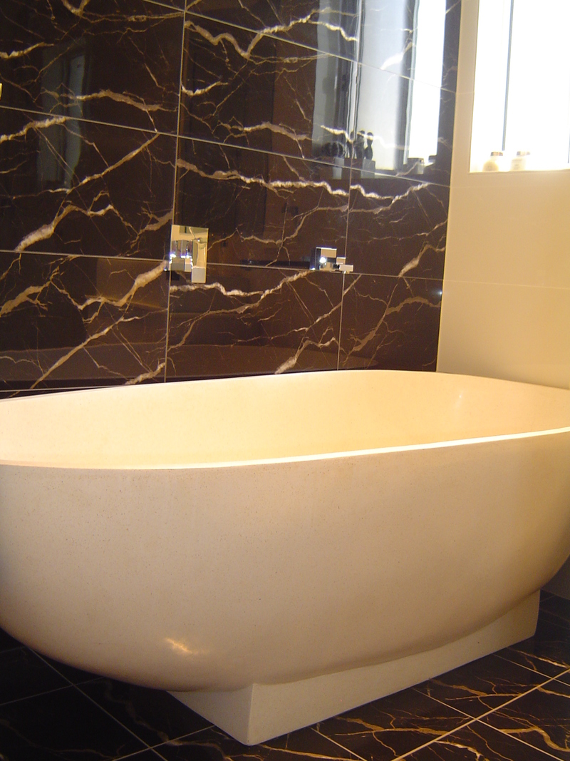 The main bathroom is fully tiled as well,has a stone top vanity and frameless shower screen.Imagine relaxing after a long day on the huge stone bath just to yourself.