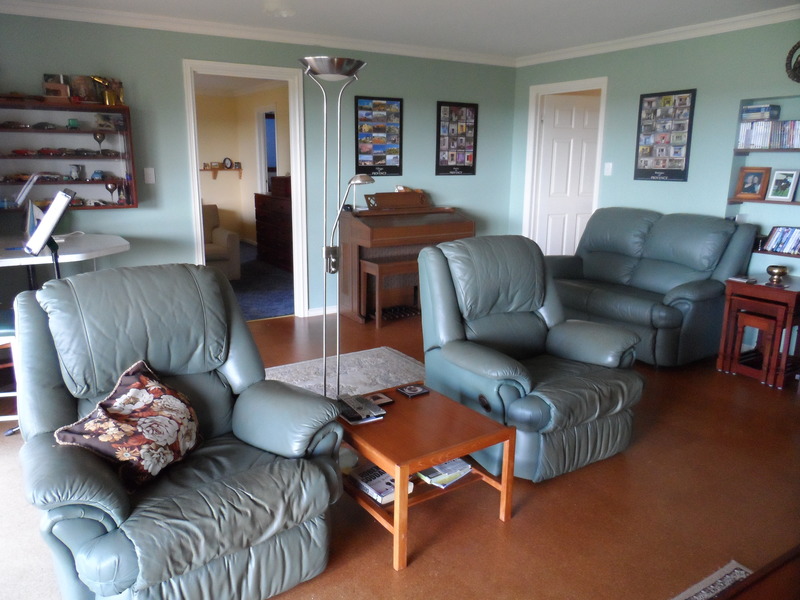 Entrance to the house is through a large lobby which flows into the main Lounge Dining area of 60 sq metres with wooden floors & high ceilings overlooking the deck area and the gardens & valley.
