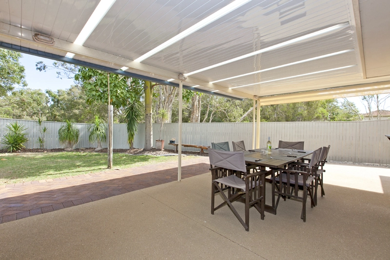 Outdoor covered patio area looking out to the pool with full privacy. Great for entertaining guests and the barbeque season.