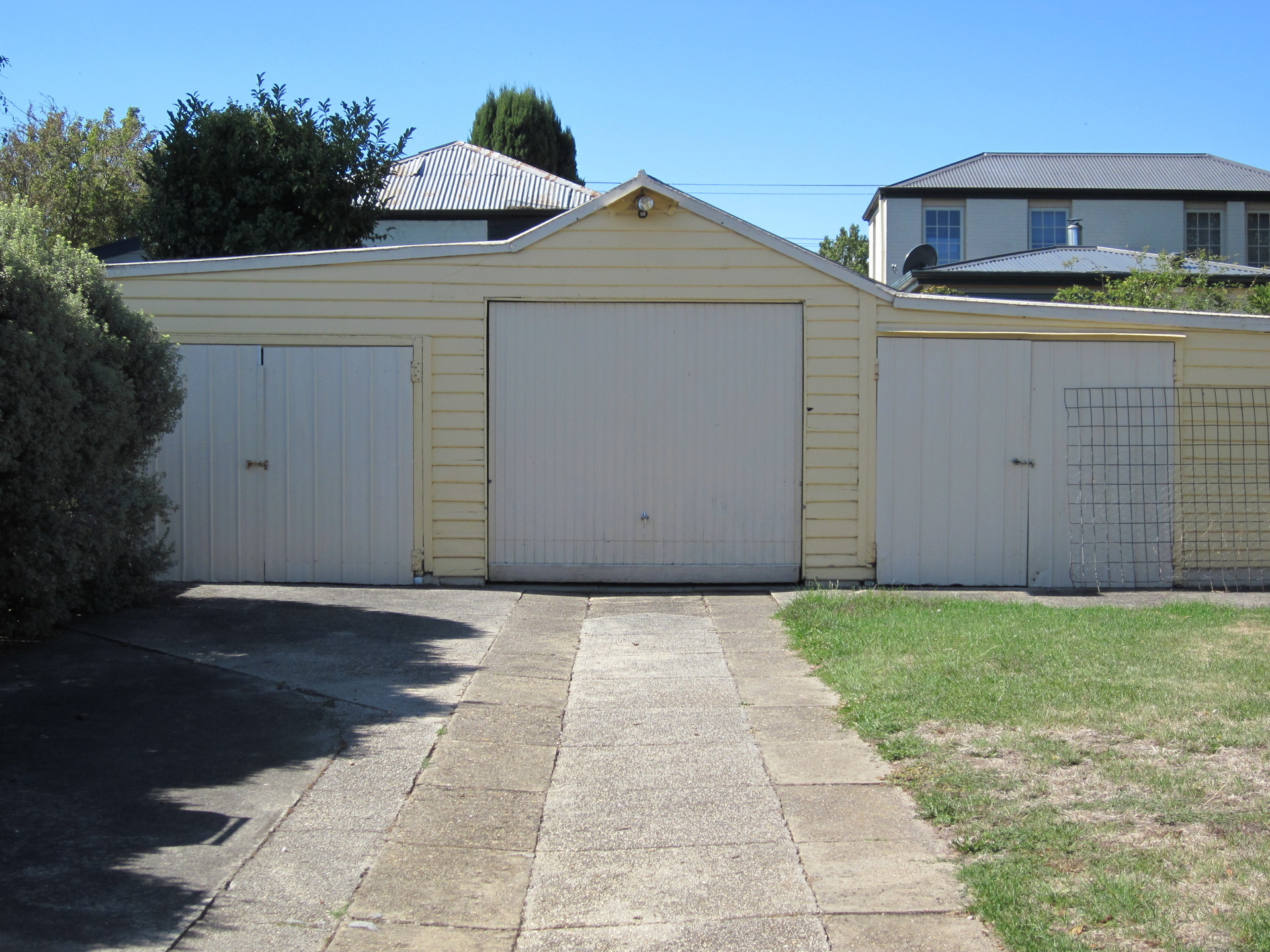 The backyard has a bird aviary and dog kennel, a three bed vegetable garden and wood shed. There is a chicken run at the back behind the shed.