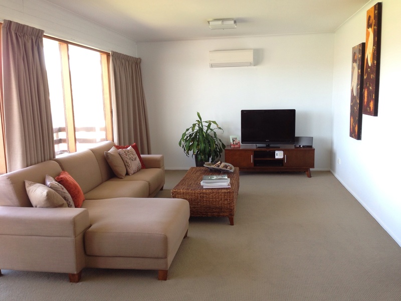 * Open Plan Lounge And Dining With A Recently Installed Heat Pump. Leading To A Balcony That Runs The Full Length Of The Apartment.