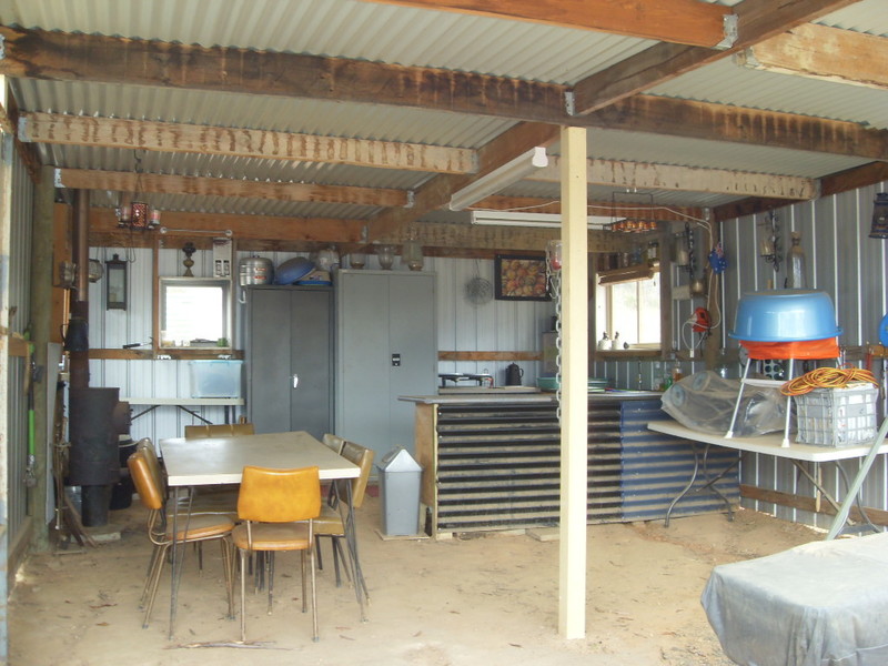 5 x 5 lockable shack, contains a fully equiped bush kitchen with table & chairs, BBQ, gas stove, pot belly for heating & much much more
