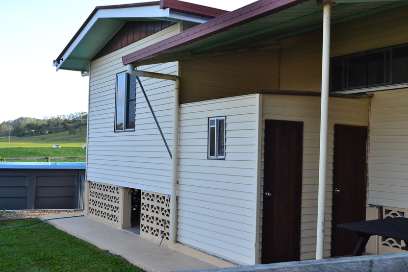 The house is appox 500mm off the ground and sits on cement stumps, plenty of cupboard space in every area of house. The dining room holds a 10 seated dining table, all bedrooms can fit a queen to king size bed with room to walk & have a desk as well, the lounge room is vast - room to play Wii or Nintendo up to 4 players, fits that huge t.v., also contains office space. Even the laundry is large, the bathroom is large, even the toilet has room to move.