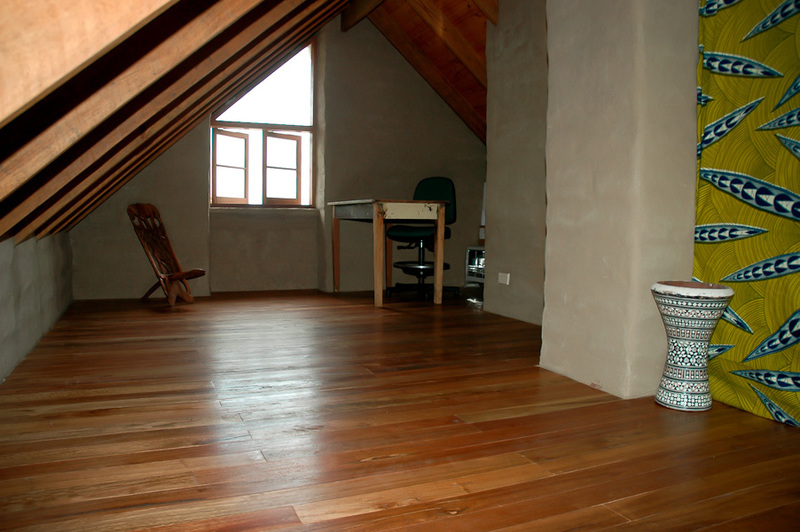 The home has two double bedrooms that open into the garden -- main bedroom with built in robe. The Kitchen/Dining area opens through large north facing glass doors on to the beautiful crafted slate patio for outdoor living. The north facing lounge room with built-in features extends into the garden through two large set of french doors. The bathroom features marble mosaic tiles and a Camphor Laurel timber vanity top. A spacious loft area with hardwood flooring would suit many purposes and is accessible by a hand-crafted spiral staircase