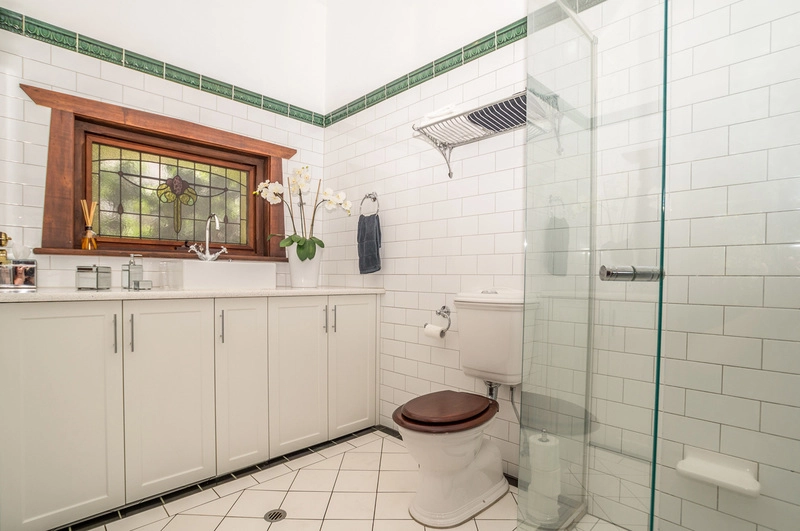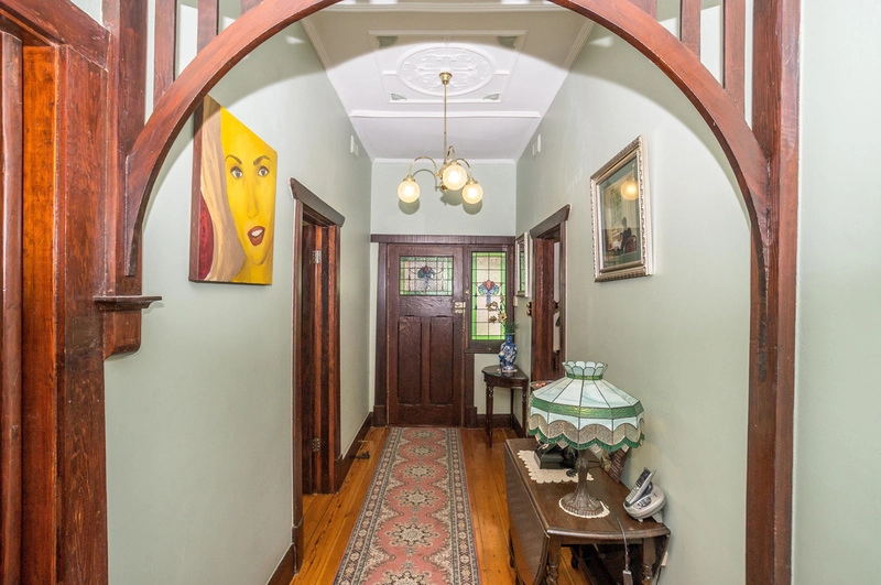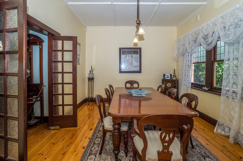 Three bedrooms- all with built –in robes and the main having a stunning ensuite. Formal entry plus formal dining and sitting rooms with polished Baltic Pine floors, open fireplaces, ornate ceilings, matched with stunning fixtures and fittings.
