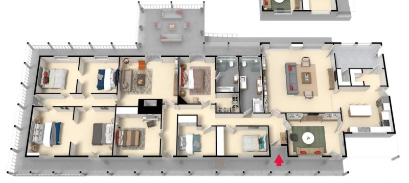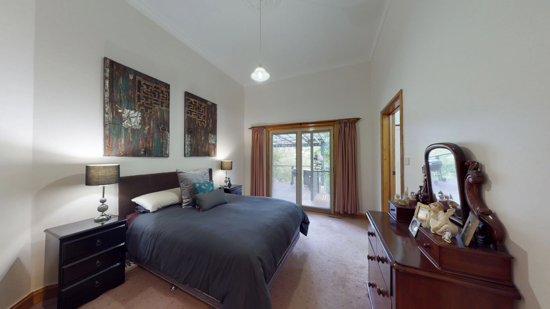 The main residence of 44sqs boasts 12' ceilings, 8 bedrooms, 2 large bathrooms and 3 expansive living areas. The master bedroom has an ensuite with 6' claw foot bath and a walk-in robe. Two north facing family rooms and the main bedroom open onto an Alfresco entertainment area. The extensive wraparound verandah takes advantage of the peaceful and picturesque country views, overlooking the well maintained gardens and a surprising variety of established trees.