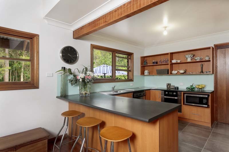 Preserved native bush land and leafy gardens combine to create a private retreat on this 2 acre (approx) property while providing a sanctuary to native birds and animals. A beautiful four bedroom home was designed to complement the natural surrounds providing a comfortable modern living space with garages, carports and workshops to accommodate every requirement for car, boat or machinery storage. The property features: