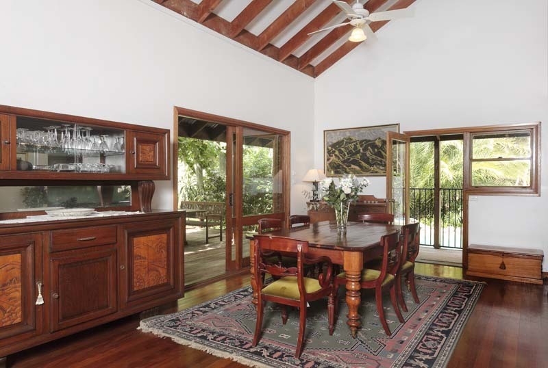 - Large open planned living areas with cathedral ceilings and exposed oregon beams with sliding glass doors accessing verandas and gardens.