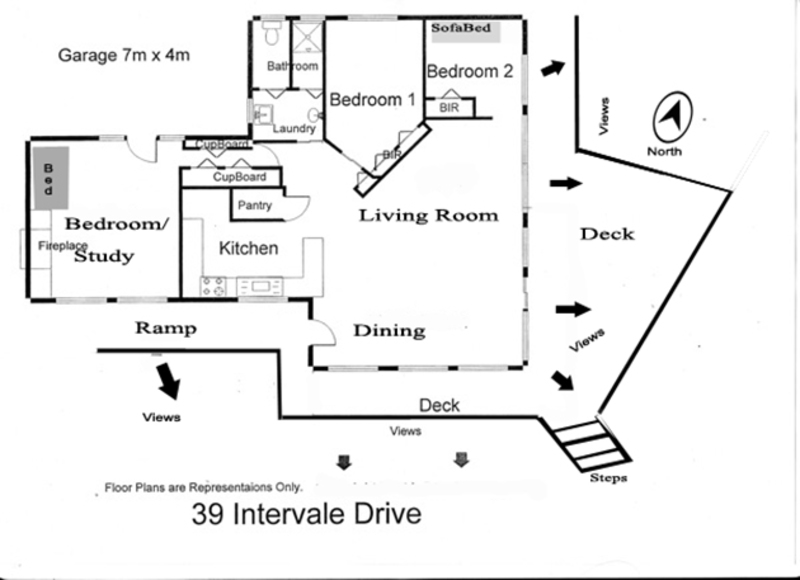 The house has a large lounge dining area, 2 bedrooms with B/I, study/3rd bedroom, kitchen, bathroom laundry, garage, double width driveway with room for boat parking.
