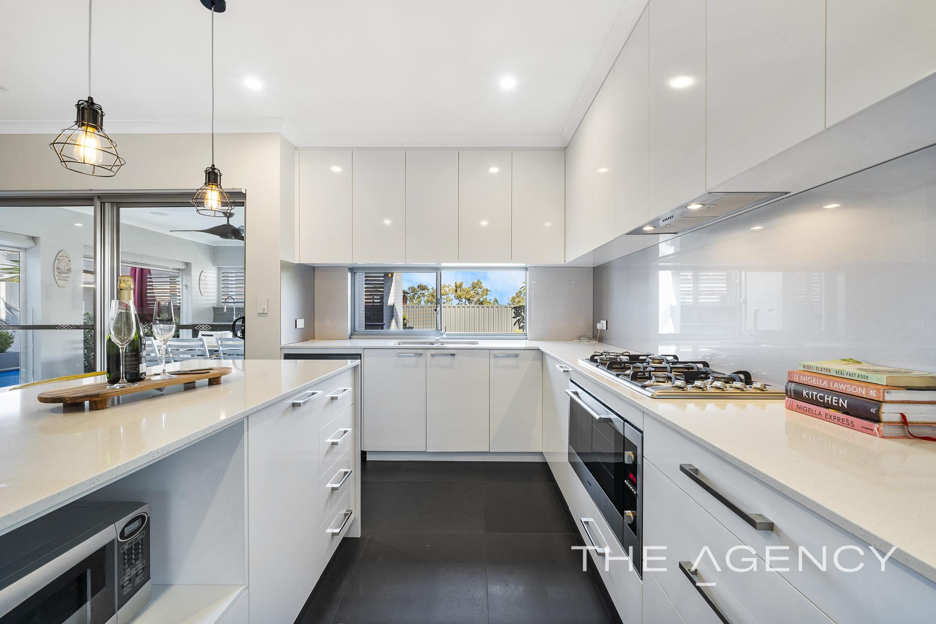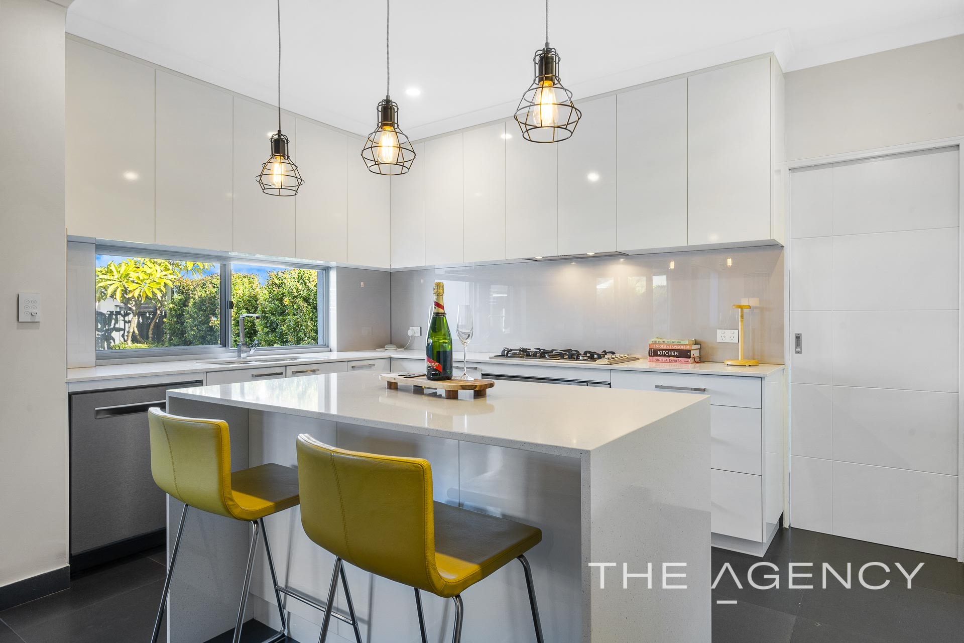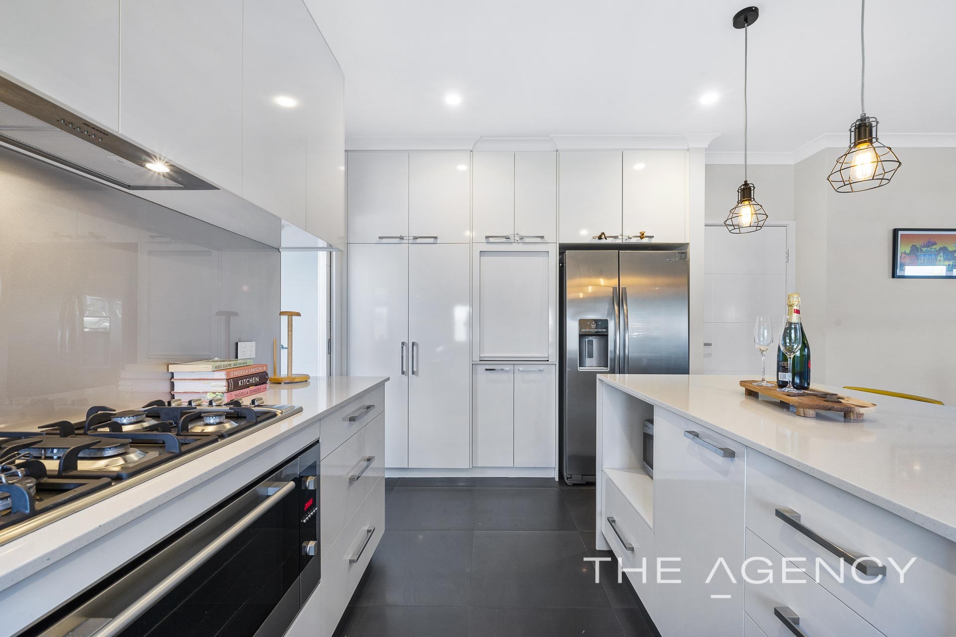 The facade is elegant yet it is inside where the quality features, luxury extras and thoughtful touches are on full display. The stunning kitchen includes stone bench tops, under mount double sink, an island bench with waterfall edges, full height overhead cabinets, integrated range hood, glass splashback, a 900mm oven and stove cooktop as well as beautiful pendant lighting.