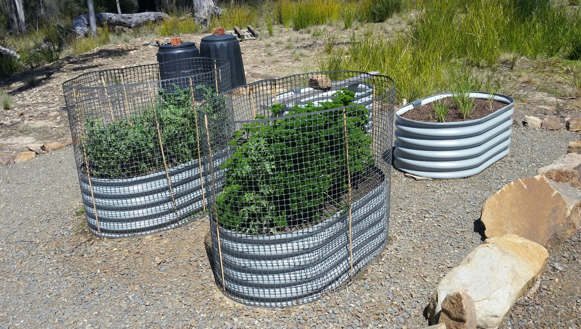 Raised garden beds provide veggies.