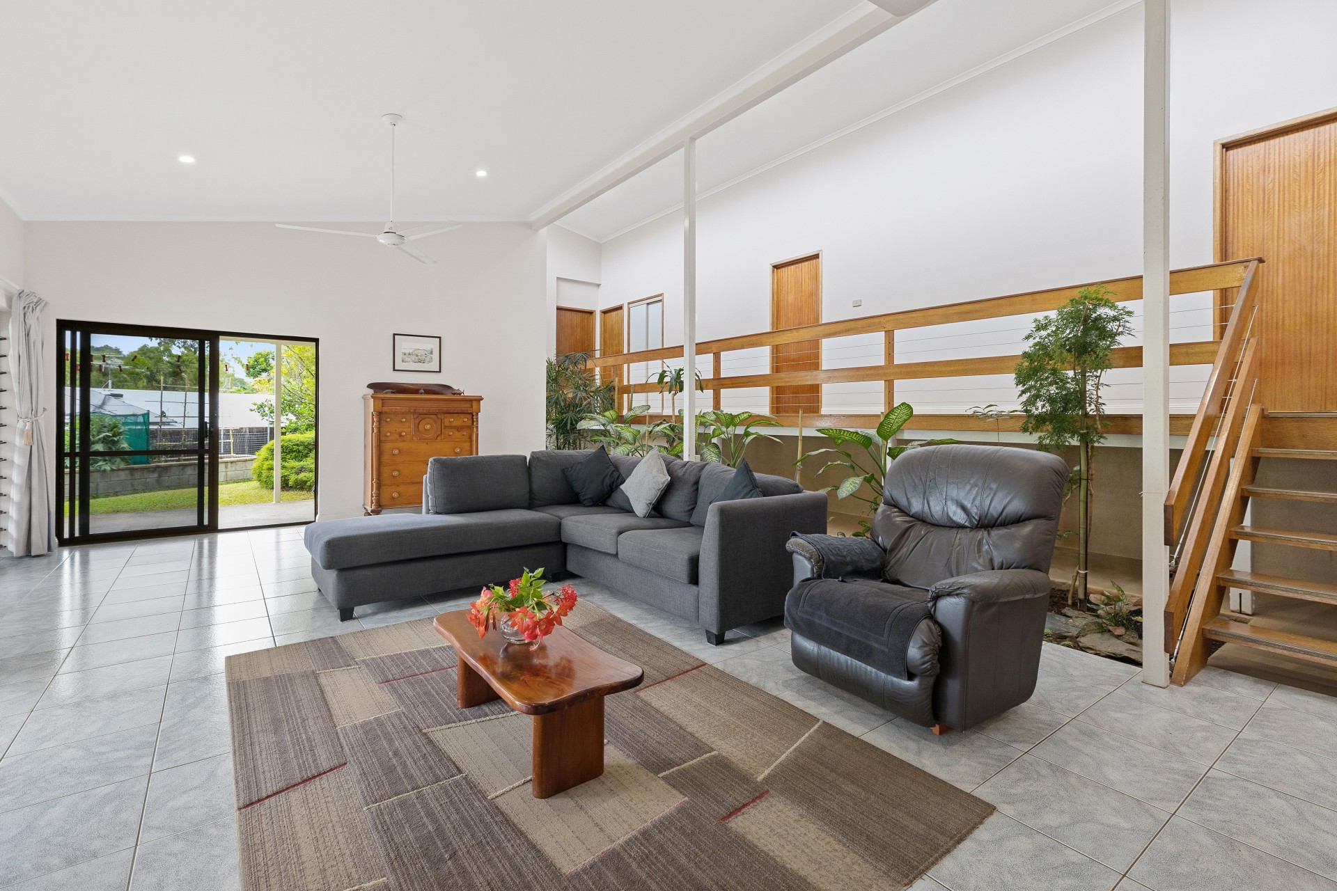 This airy and light filled architect designed split level tropical home is positioned and oriented on an elevated 1027sqm block to capture the cool SE breezes and allow beautiful mountain vistas of both Mt Whitfield Conservation Park and the Redlynch Valley.