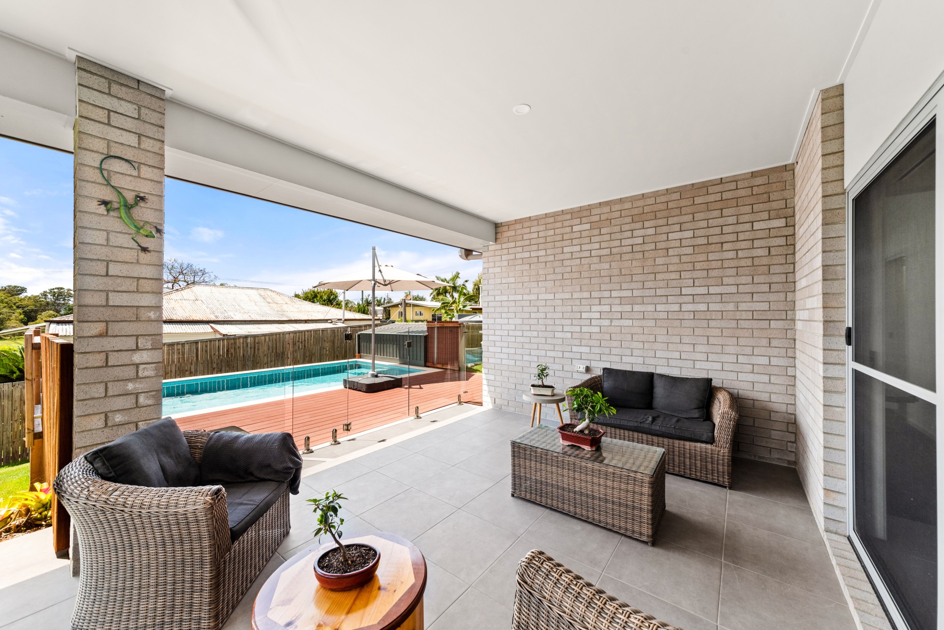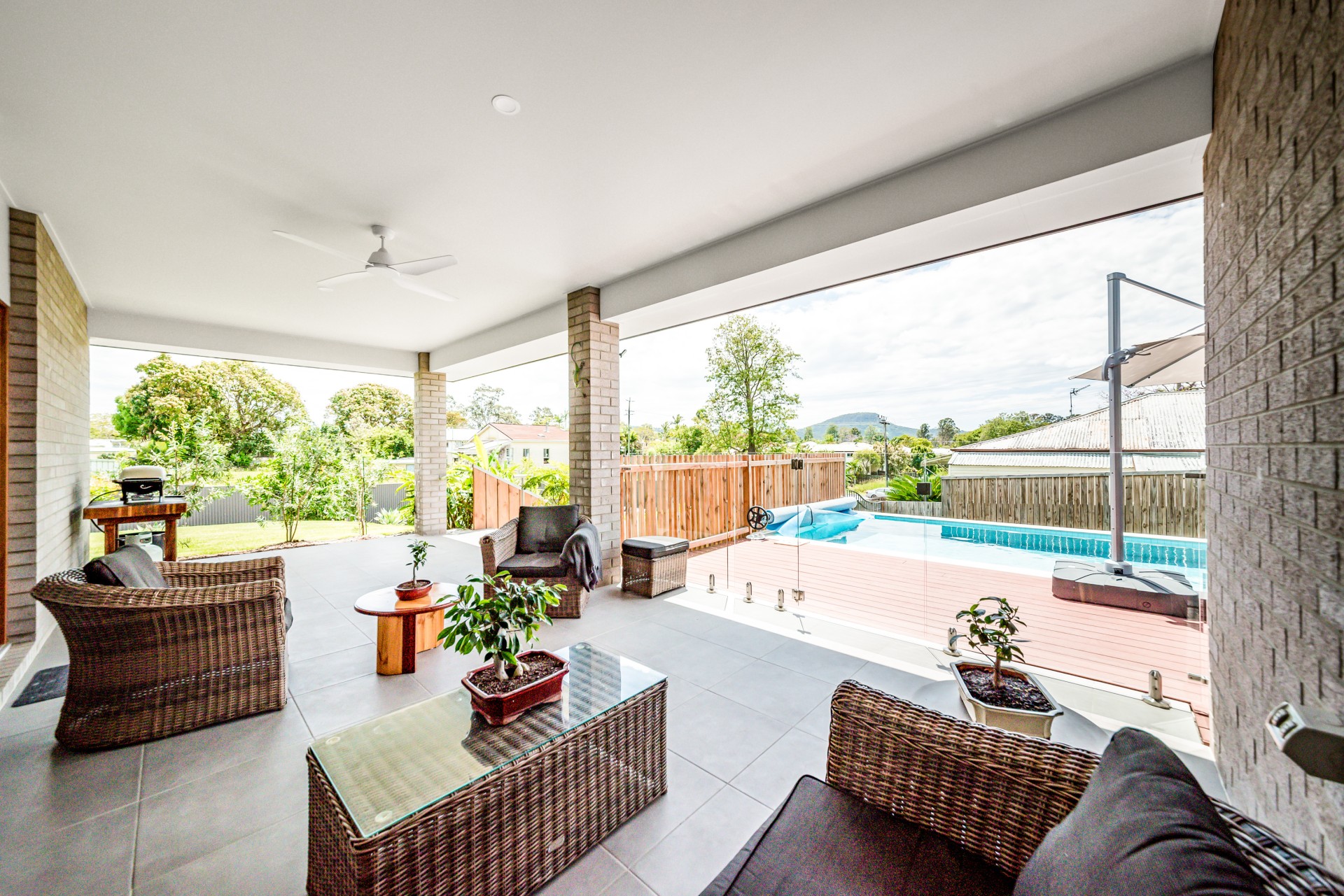 The outdoor covered patio is perfect for BBQs with the adjoining freshwater pool overlooking Mount Ninderry.