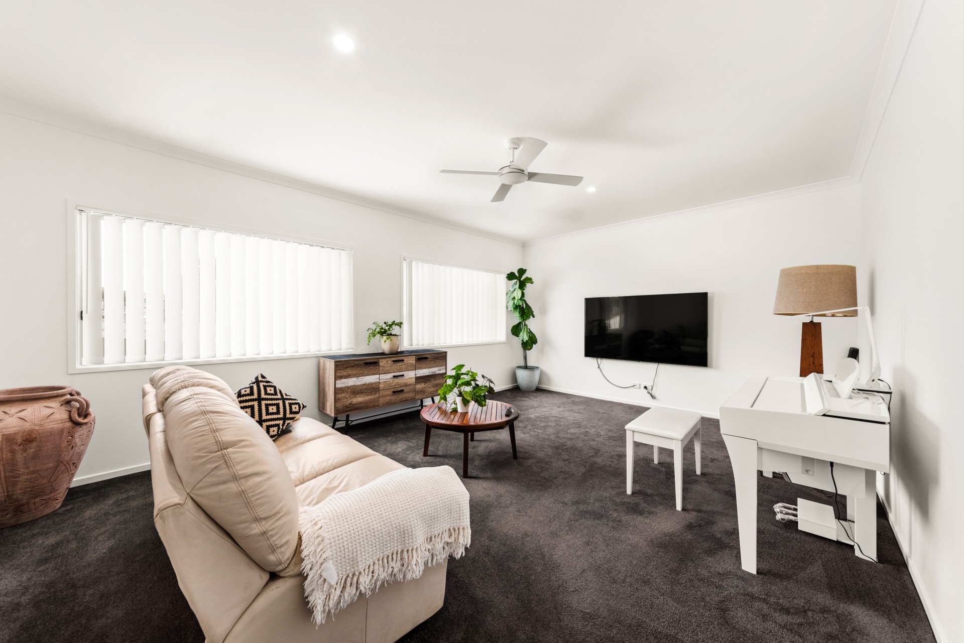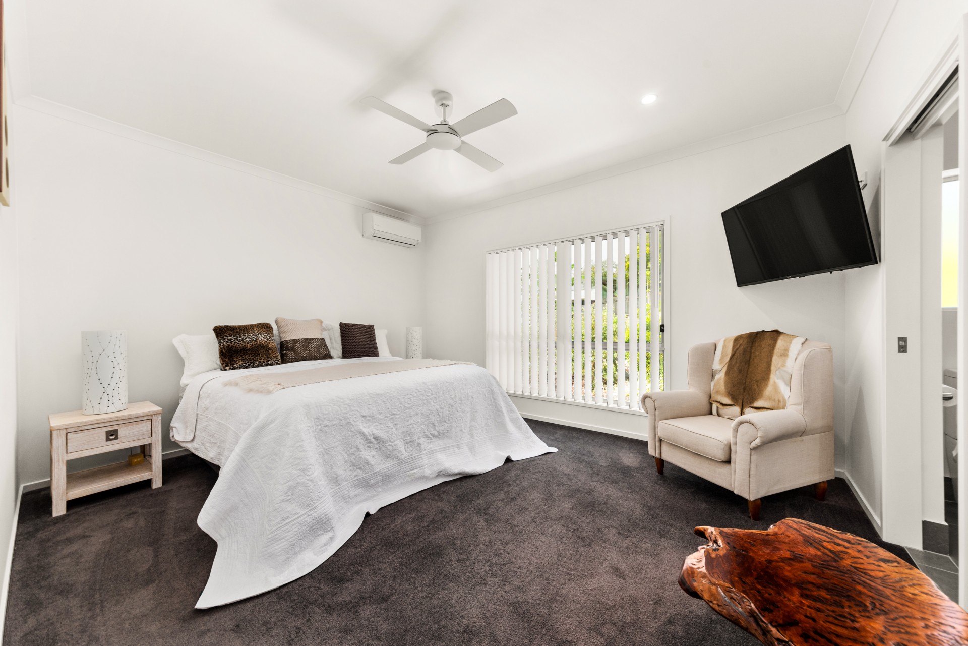The other three bedrooms have built-in robes, ceiling fans, carpet and vertical blinds. All bedrooms comfortably fit a king-size bed.