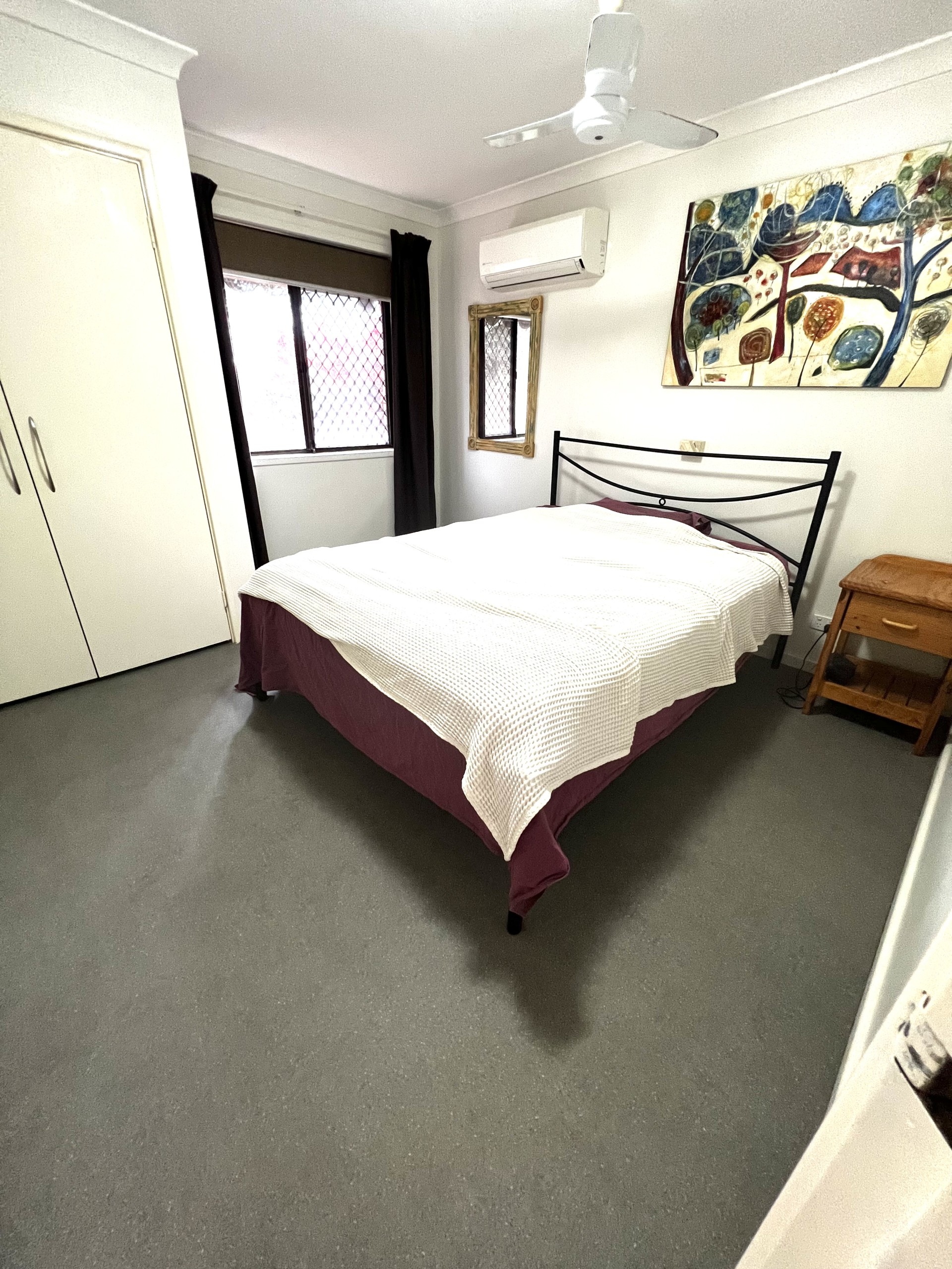 3 bedrooms and lounge with split system AC and ceiling fans