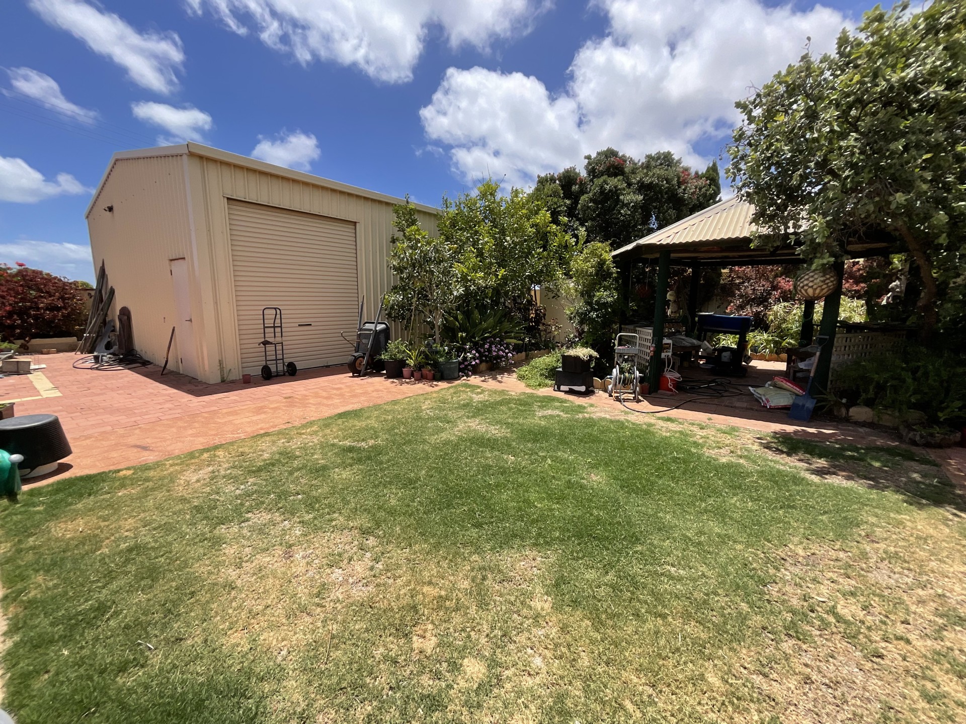 North facing rear yard with pergola area
