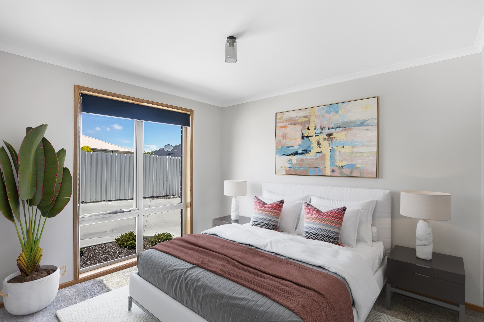 The north-facing open-plan living is spacious and captures all-day sun, with the added bonus of a convenient walk-in linen cupboard. The large galley kitchen features plenty of cupboard and bench space and quality appliances. This is a beautiful, modern and spacious villa and ideal for those who wish to avoid the stress of building or waiting for titles to issue.