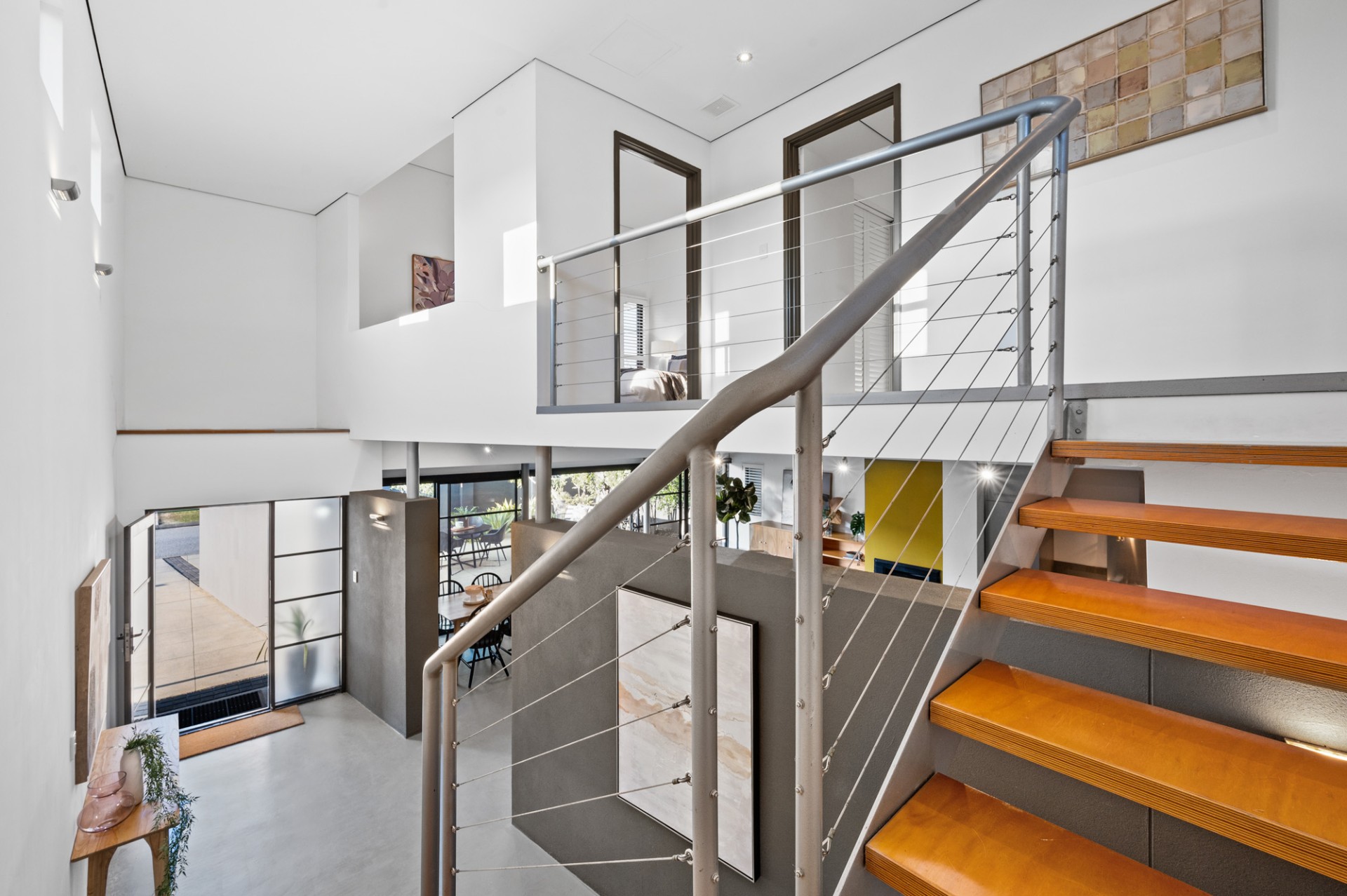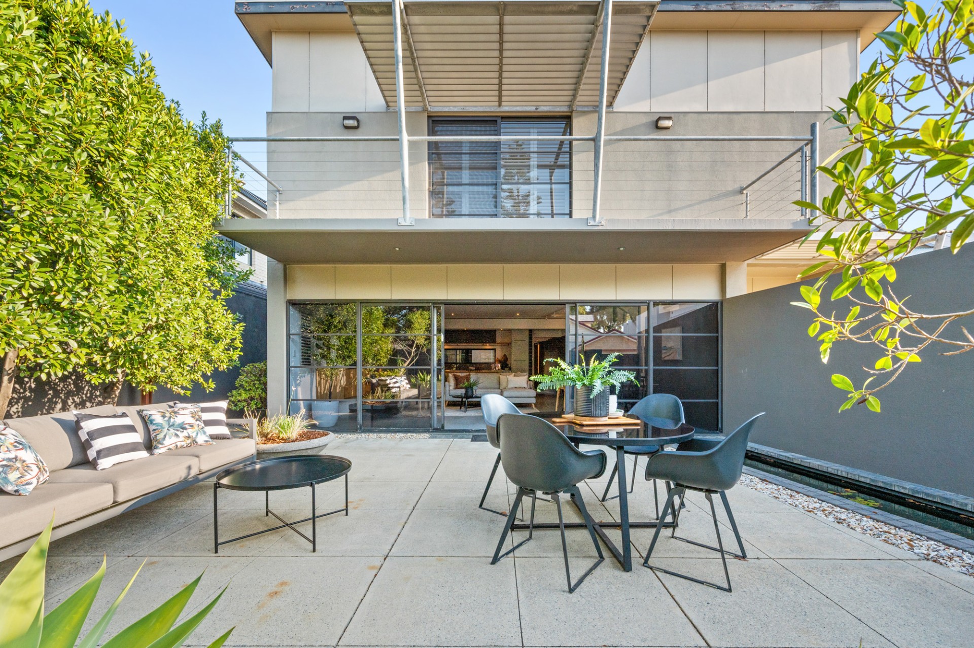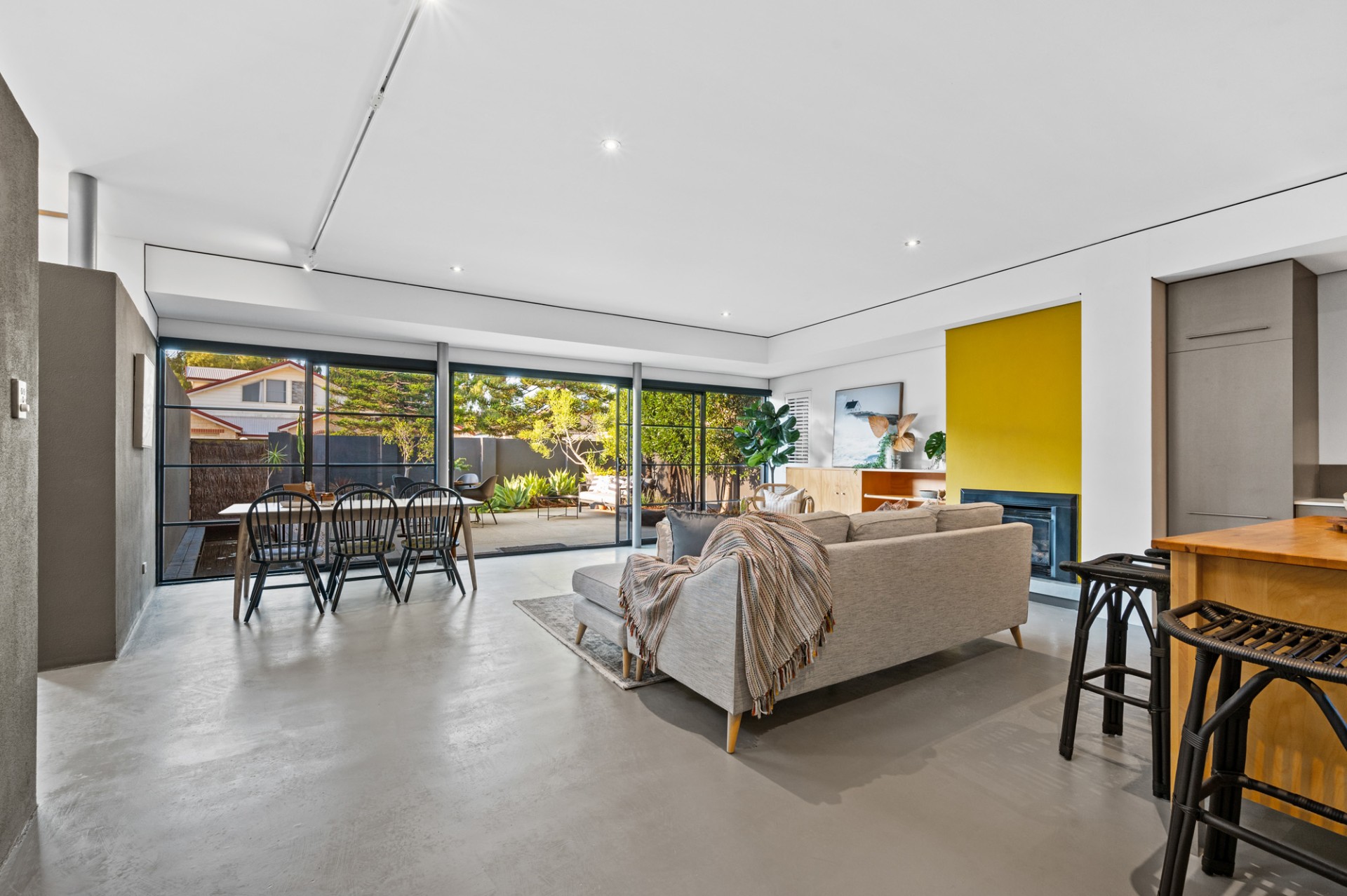 Created from the ground up by an award-winning architect this 3 bedroom 2 bathroom home is one of a kind. Designed with the original " Beach House" lines encasing rendered walls and a skillion roof it is a reminder of the history of the area. The home comprises two linked cubes creating angled spaces. Cantilevered steel louvres shade a broad balcony across the upper level and shelter the front entrance. Designed to take in as much northern light as possible the winter sun heats up the concrete floors. The open office beyond the stairs makes wonderful use of space and as you move through this home more clever design details become clearer. The spacious combined living area, dining area and kitchen lends itself to family life and for those who love to entertain. Large glass doors open out to a north facing private courtyard adding to that feeling of space. A water feature also adds to the ambience. The well proportioned kitchen contains European stainless steel cooking, integrated appliances and an island bench. This area is purposely designed to be completely free from concealment. A solid wall downstairs runs the length of the home which separates the main entertaining hub from the utility areas. Two of the bedrooms upstairs are a very good size and both share a dual-access en-suite. The master bedroom has a spacious walk in robe and the other bedroom has a built-in robe. Wall cut-outs and white louvred window shutters continue that restful theme. Bedroom three is on a mezzanine floor accessible from the lower level. It has its own sitting area or study which also opens up to a courtyard. There is a detached remote-controlled double garage at the rear which allows for extra storage if needed. Extra parking at the rear is also there if required. If you are looking for a low-maintenance home then this is a perfect opportunity. If you want a weekender then this again is a perfect opportunity. This home is ideally situated in a quiet cul-de-sac with shops and a cafe over the road and is a leisurely stroll to the foreshores and all of the amenities. Please call us for a private inspection or we will see you at a home open.