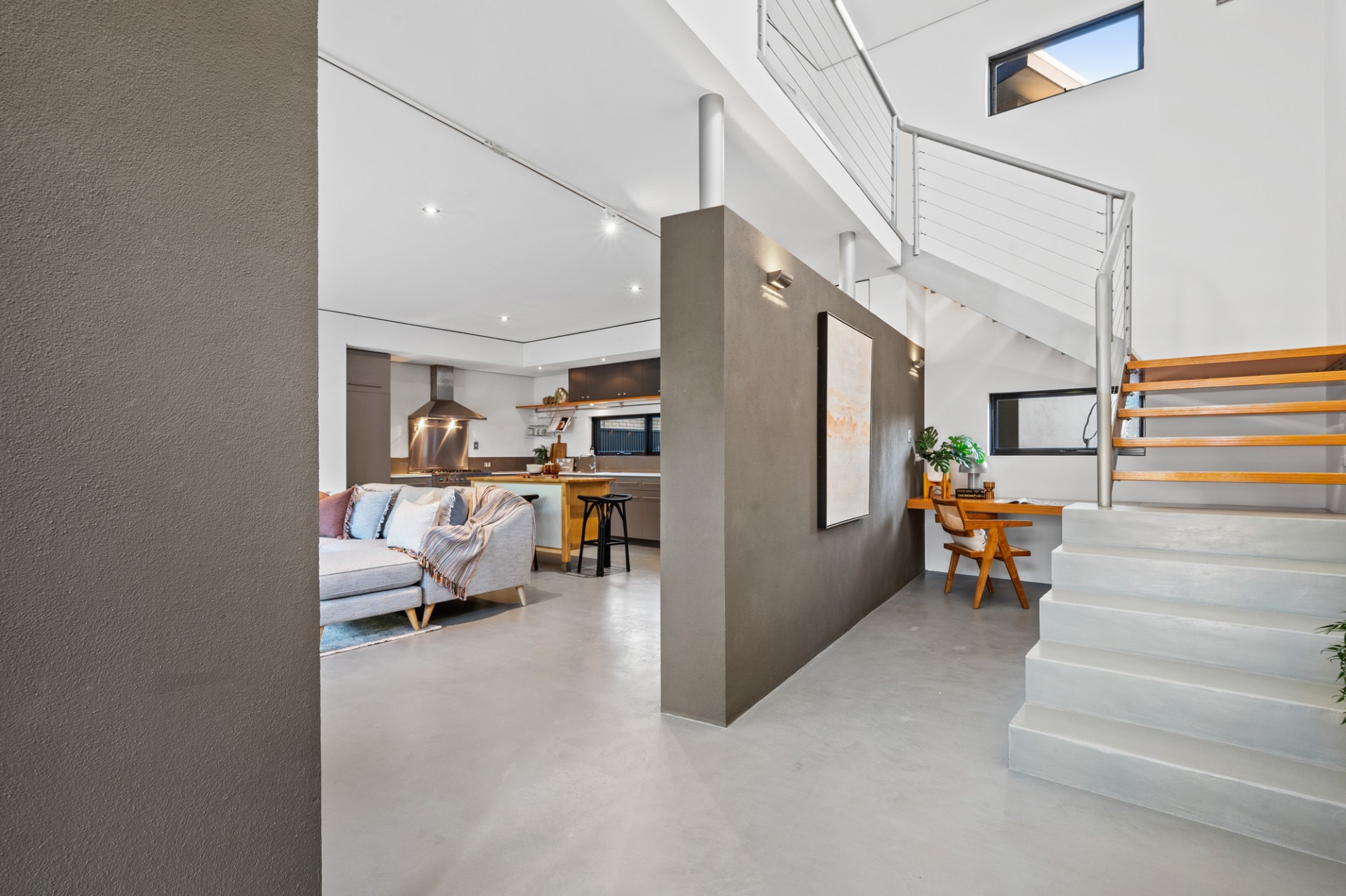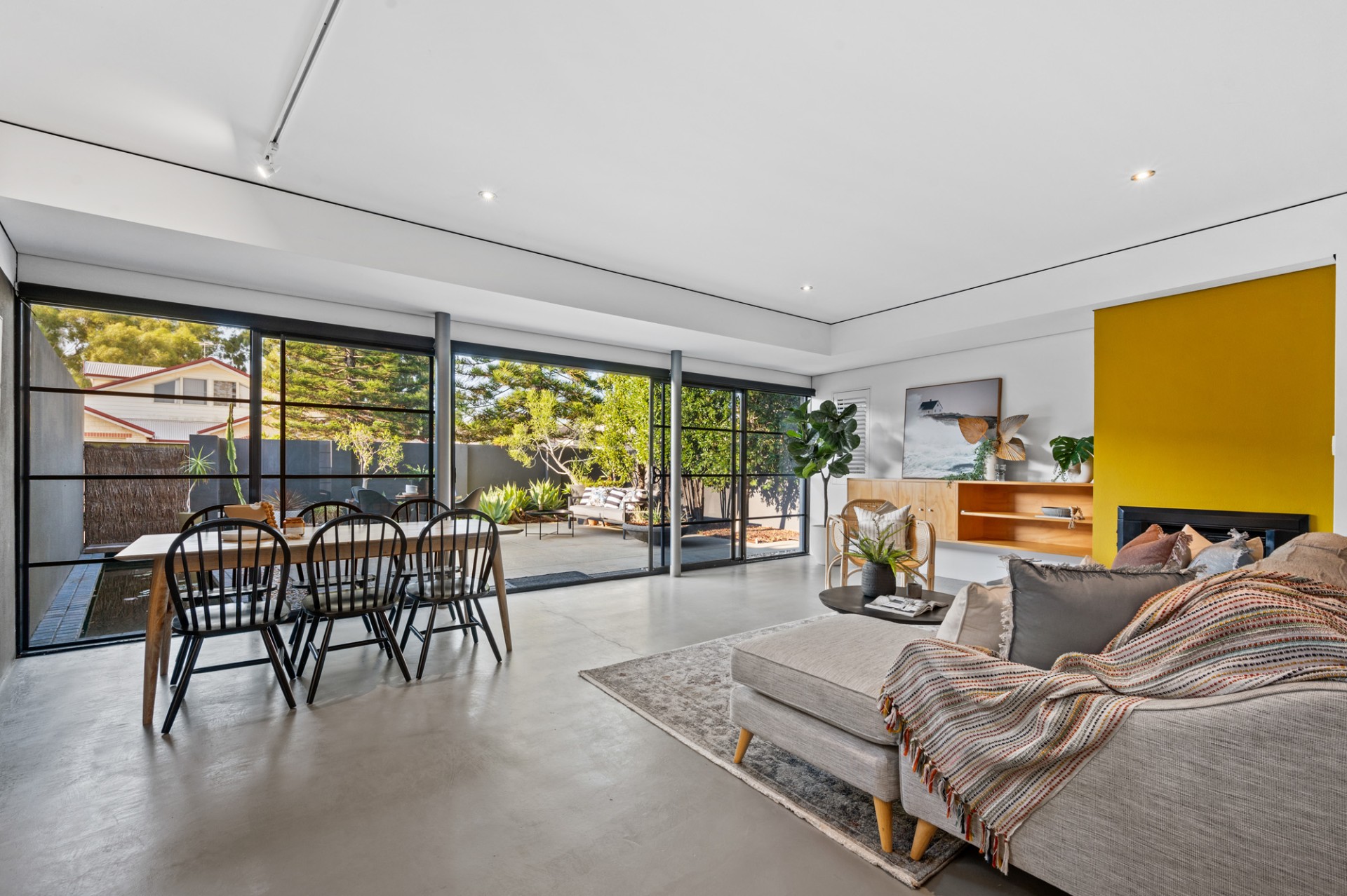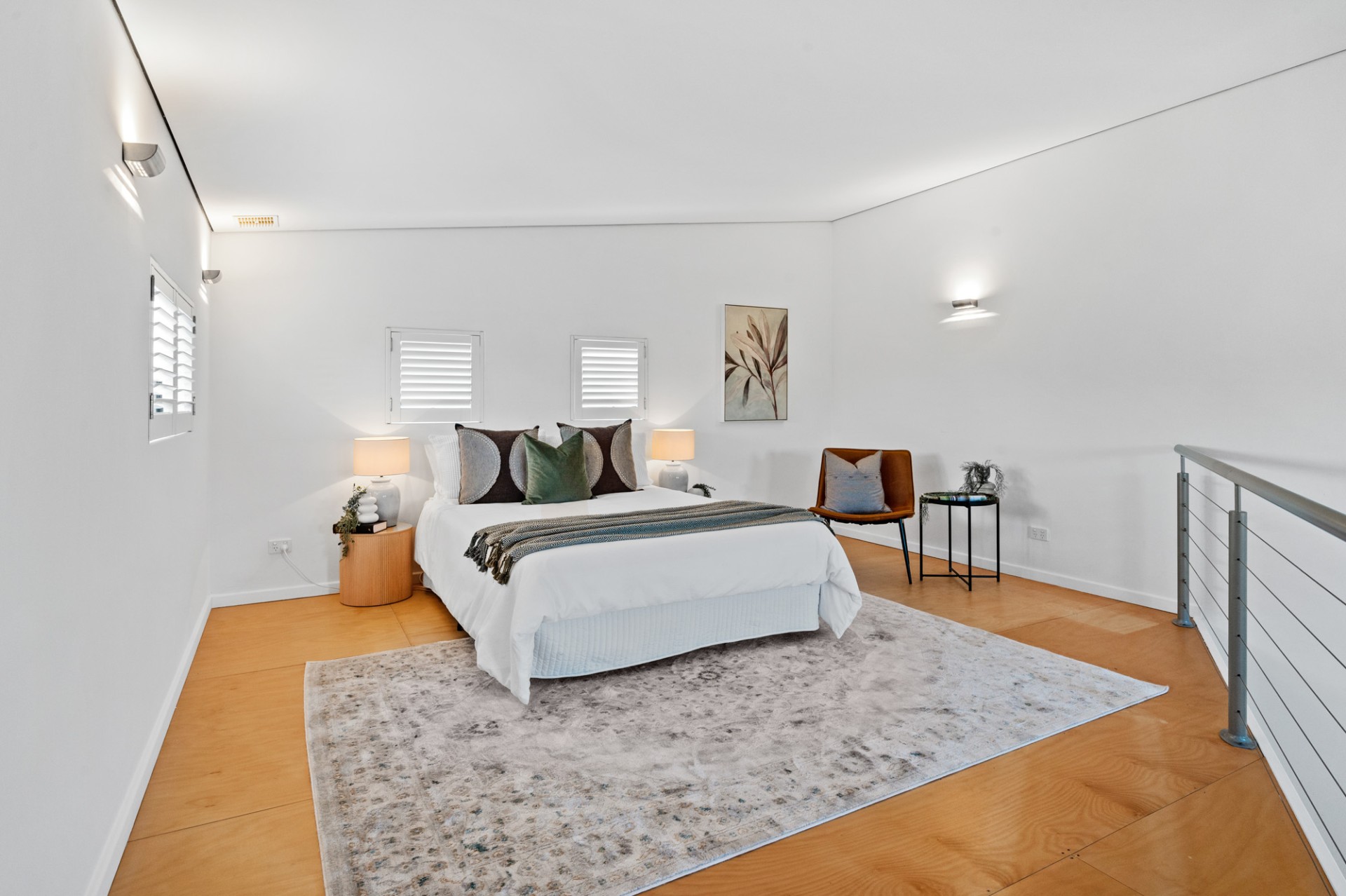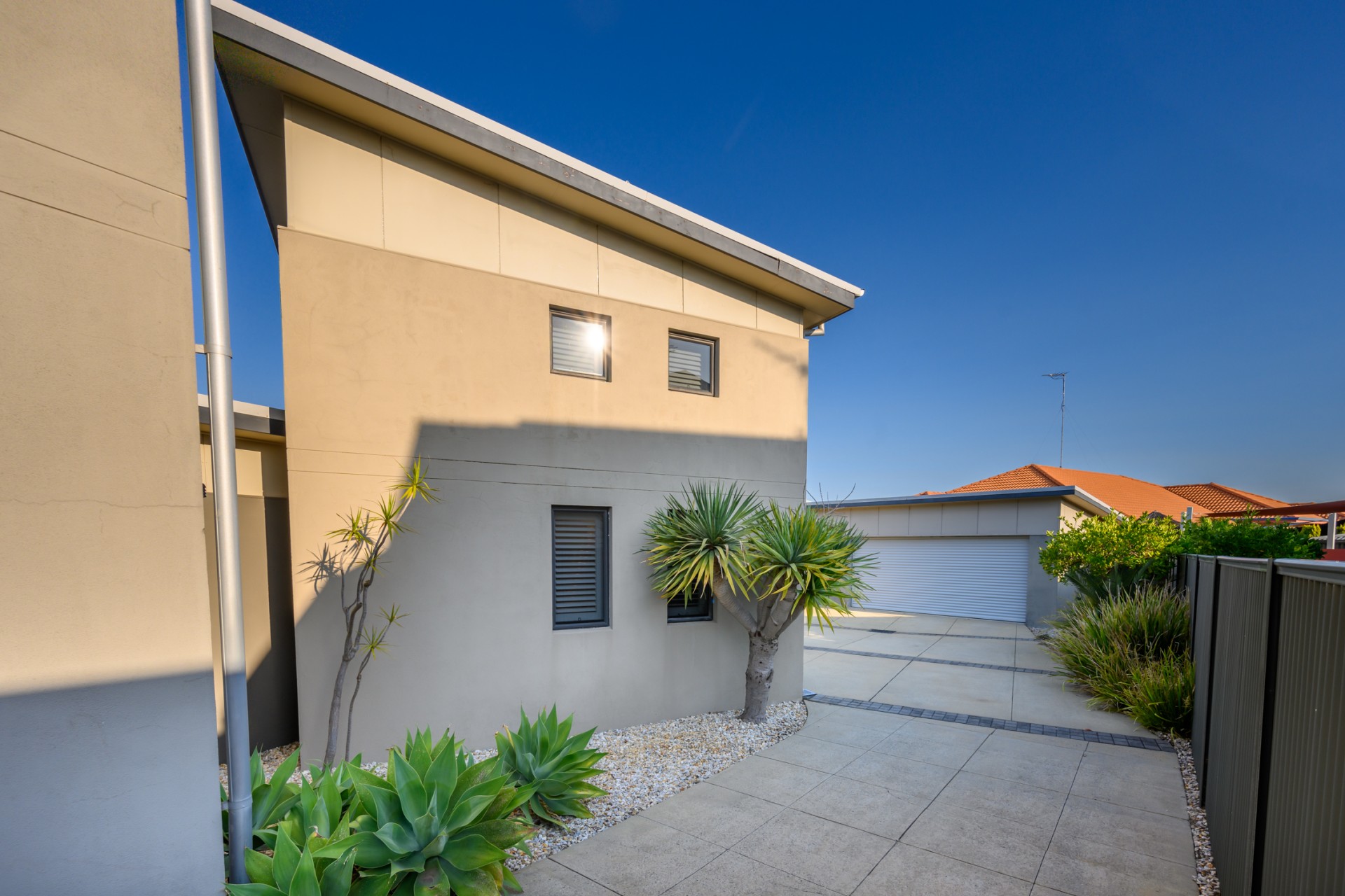 Created from the ground up by an award-winning architect this 3 bedroom 2 bathroom home is one of a kind. Designed with the original " Beach House" lines encasing rendered walls and a skillion roof it is a reminder of the history of the area. The home comprises two linked cubes creating angled spaces. Cantilevered steel louvres shade a broad balcony across the upper level and shelter the front entrance. Designed to take in as much northern light as possible the winter sun heats up the concrete floors. The open office beyond the stairs makes wonderful use of space and as you move through this home more clever design details become clearer. The spacious combined living area, dining area and kitchen lends itself to family life and for those who love to entertain. Large glass doors open out to a north facing private courtyard adding to that feeling of space. A water feature also adds to the ambience. The well proportioned kitchen contains European stainless steel cooking, integrated appliances and an island bench. This area is purposely designed to be completely free from concealment. A solid wall downstairs runs the length of the home which separates the main entertaining hub from the utility areas. Two of the bedrooms upstairs are a very good size and both share a dual-access en-suite. The master bedroom has a spacious walk in robe and the other bedroom has a built-in robe. Wall cut-outs and white louvred window shutters continue that restful theme. Bedroom three is on a mezzanine floor accessible from the lower level. It has its own sitting area or study which also opens up to a courtyard. There is a detached remote-controlled double garage at the rear which allows for extra storage if needed. Extra parking at the rear is also there if required. If you are looking for a low-maintenance home then this is a perfect opportunity. If you want a weekender then this again is a perfect opportunity. This home is ideally situated in a quiet cul-de-sac with shops and a cafe over the road and is a leisurely stroll to the foreshores and all of the amenities. Please call us for a private inspection or we will see you at a home open.