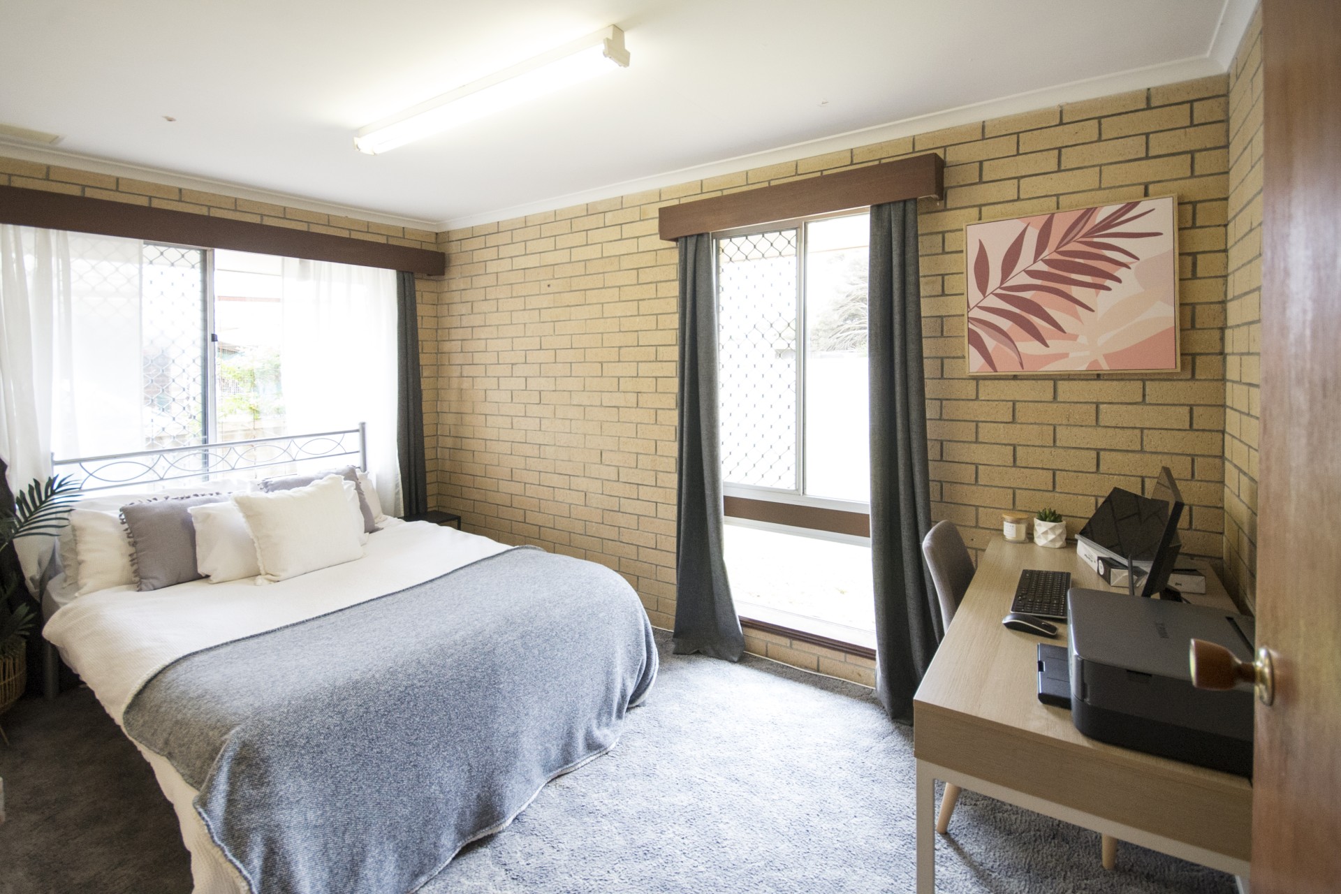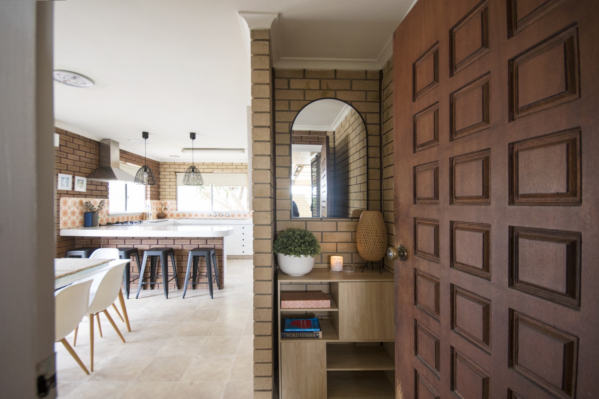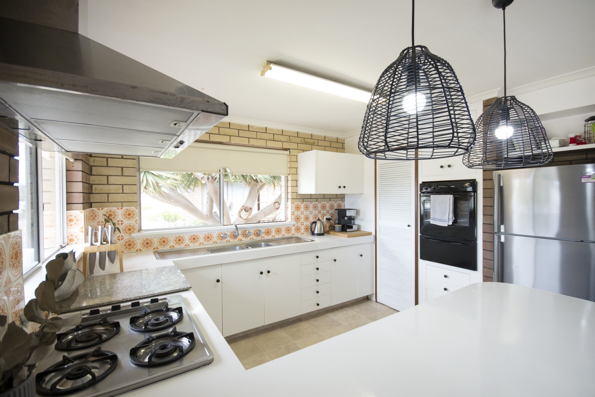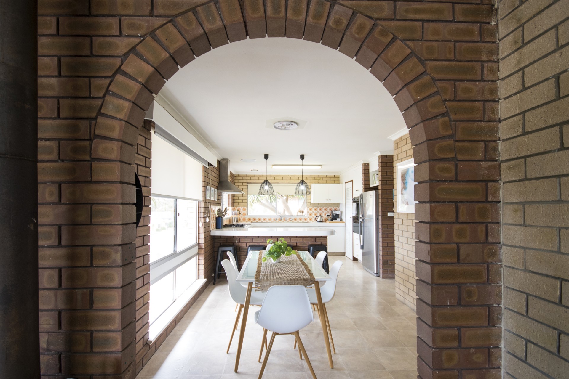 Radiant with a warm and welcoming ambience throughout, the floorplan incorporates a generous living room with the rustic touches of exposed brick walls a built-in fireplace, and an arched entry through to the dining room and open-plan kitchen equipped with a gas cooktop, wall oven and a breakfast bar. The three bedrooms share a central bathroom with shower and separate toilet.