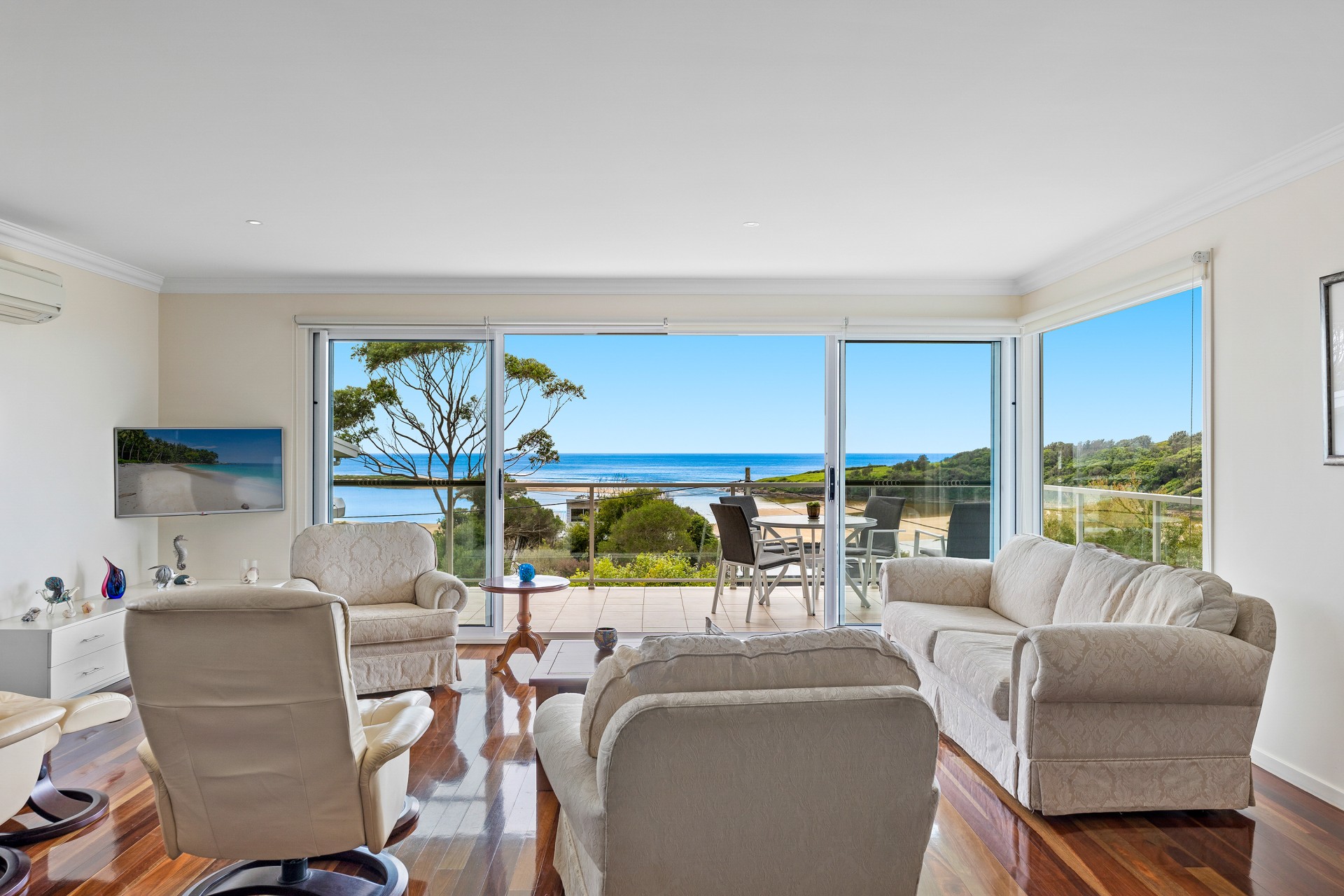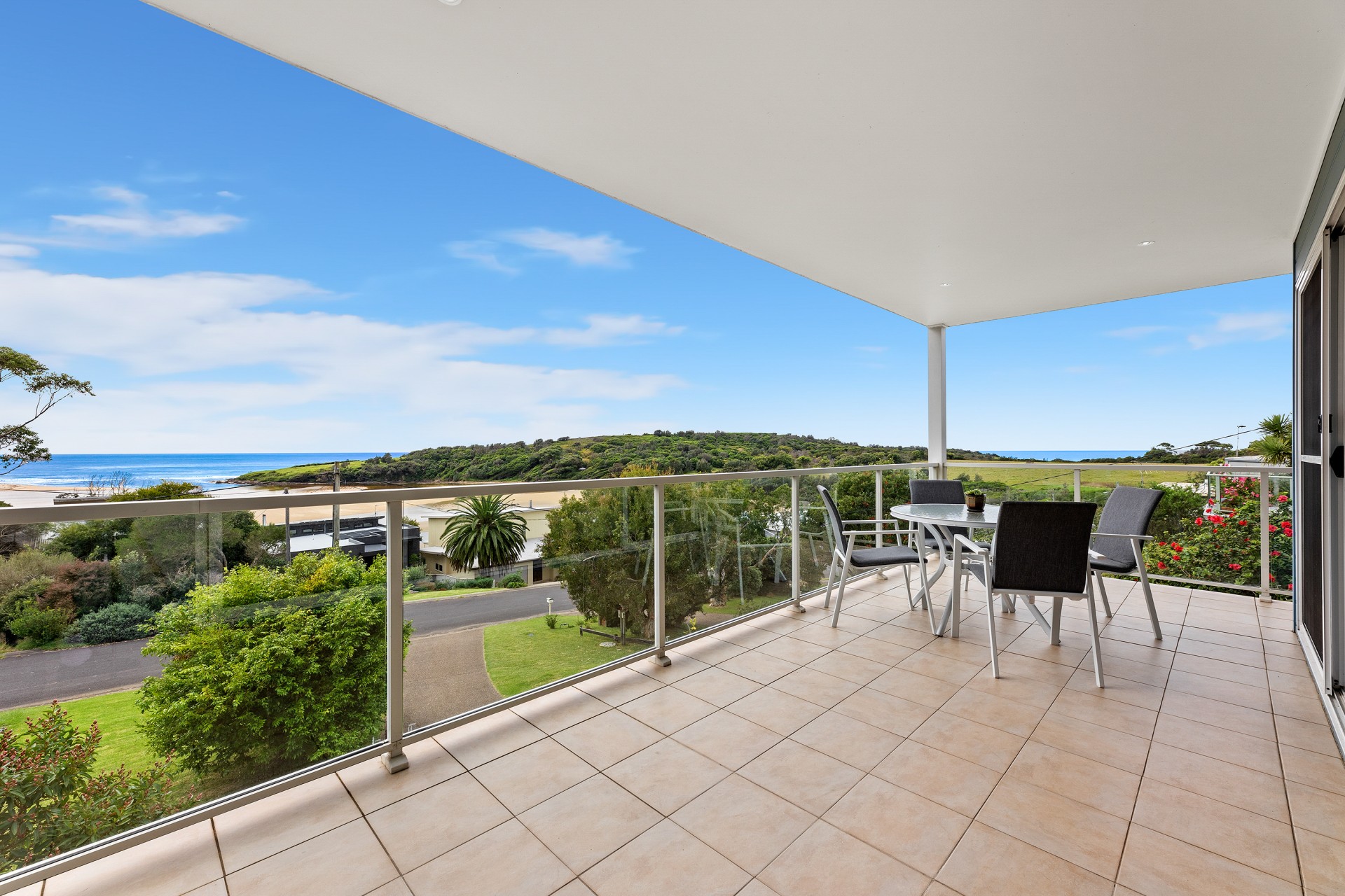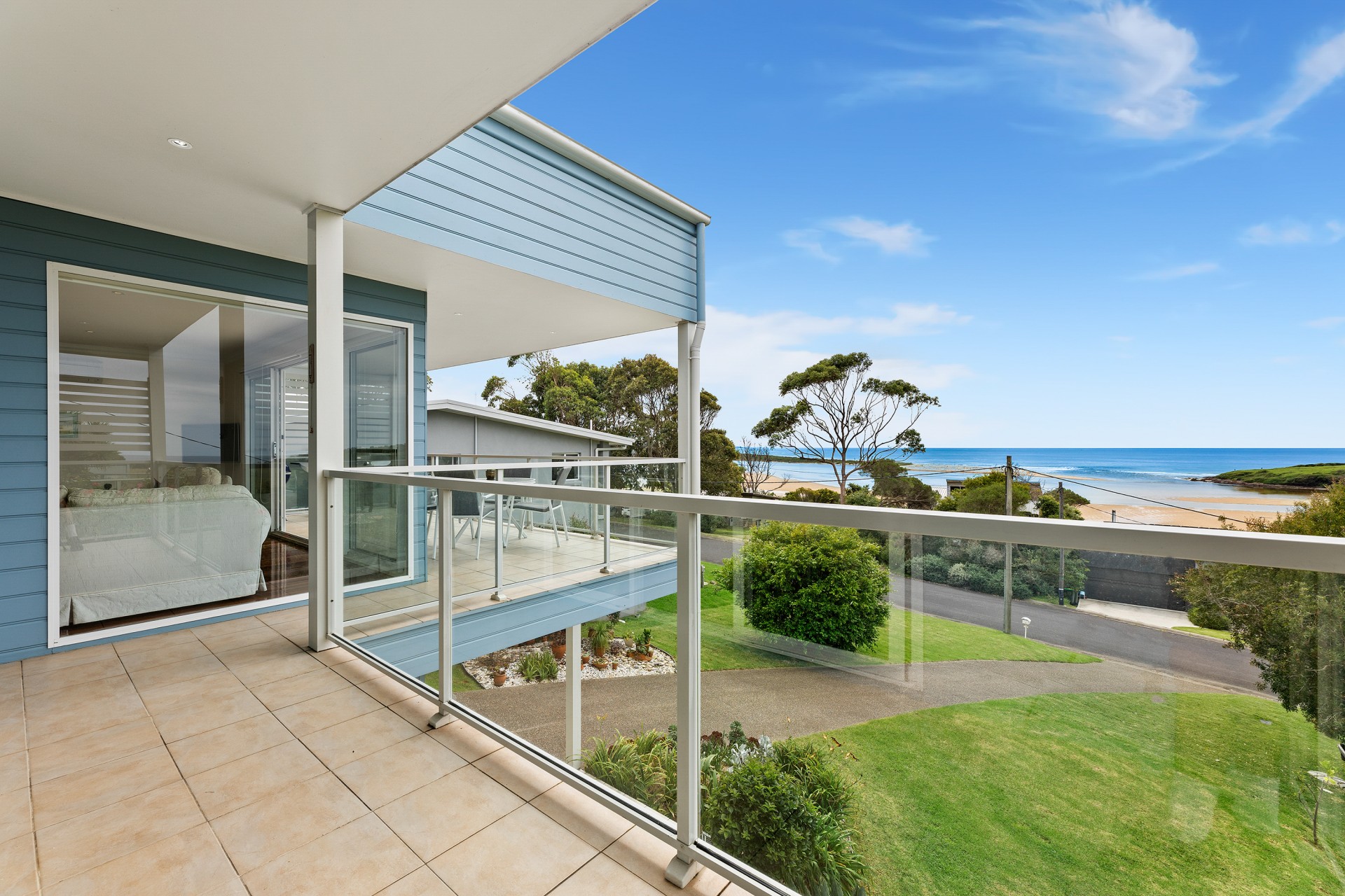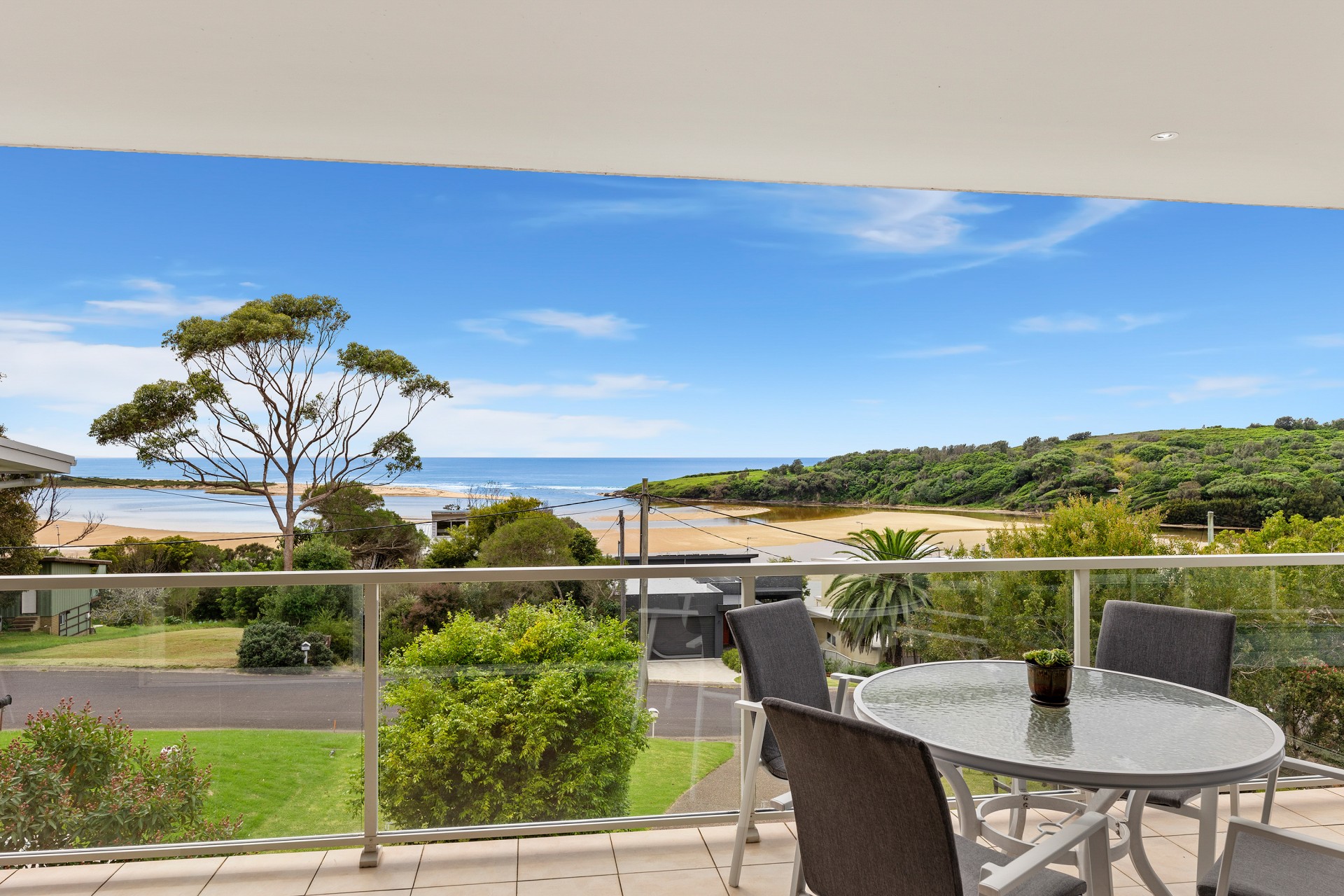 Only metres from the Wallaga Lake foreshore with uninterrupted views that cannot be built out, this home looks over the lake entrance to the sparkling ocean and stands tall on the high side of the street.