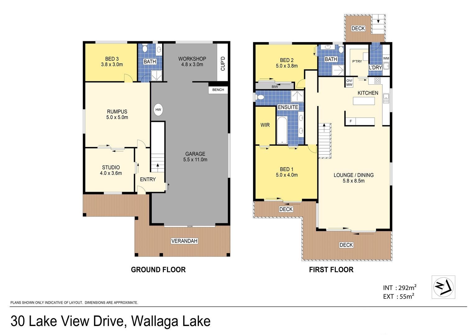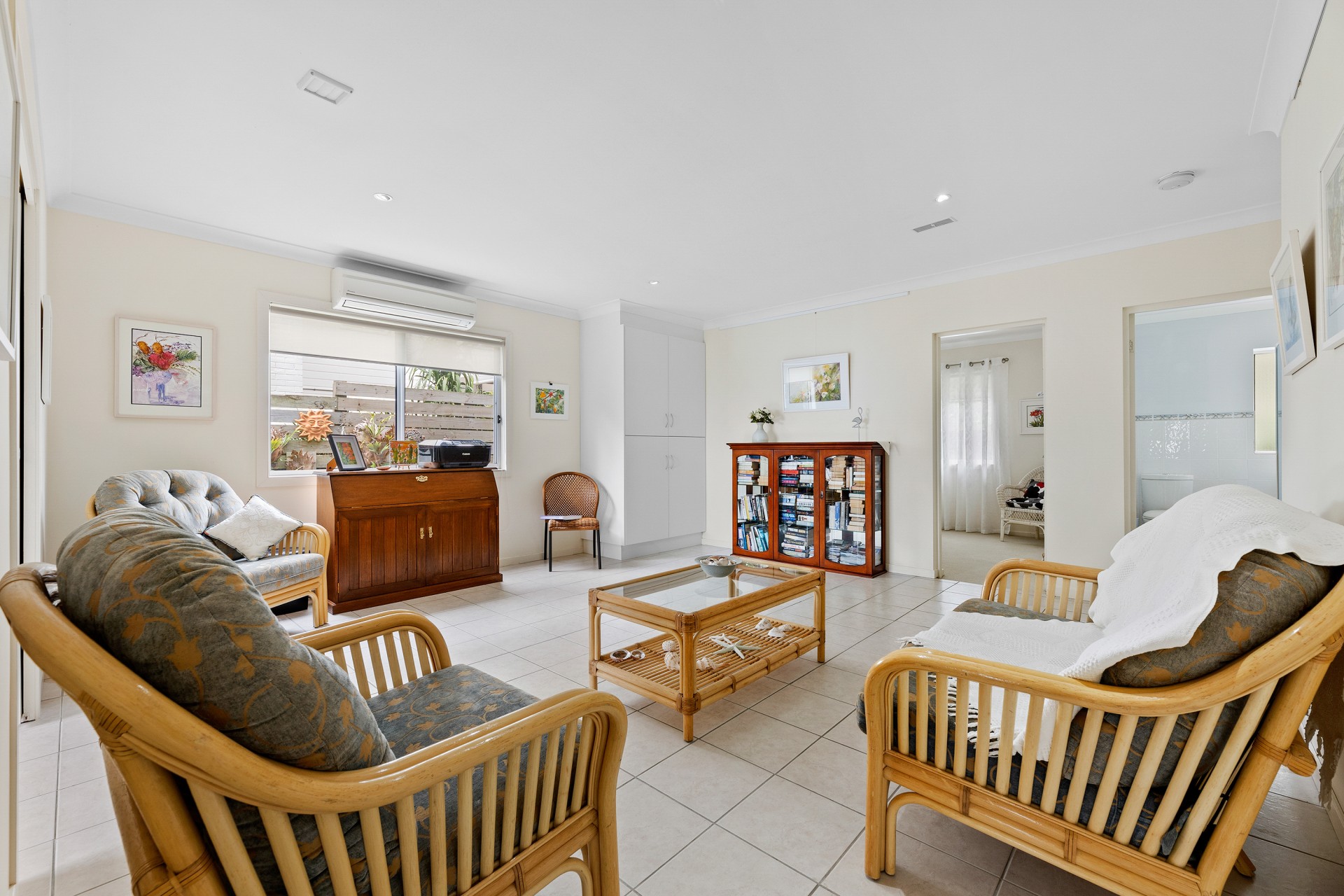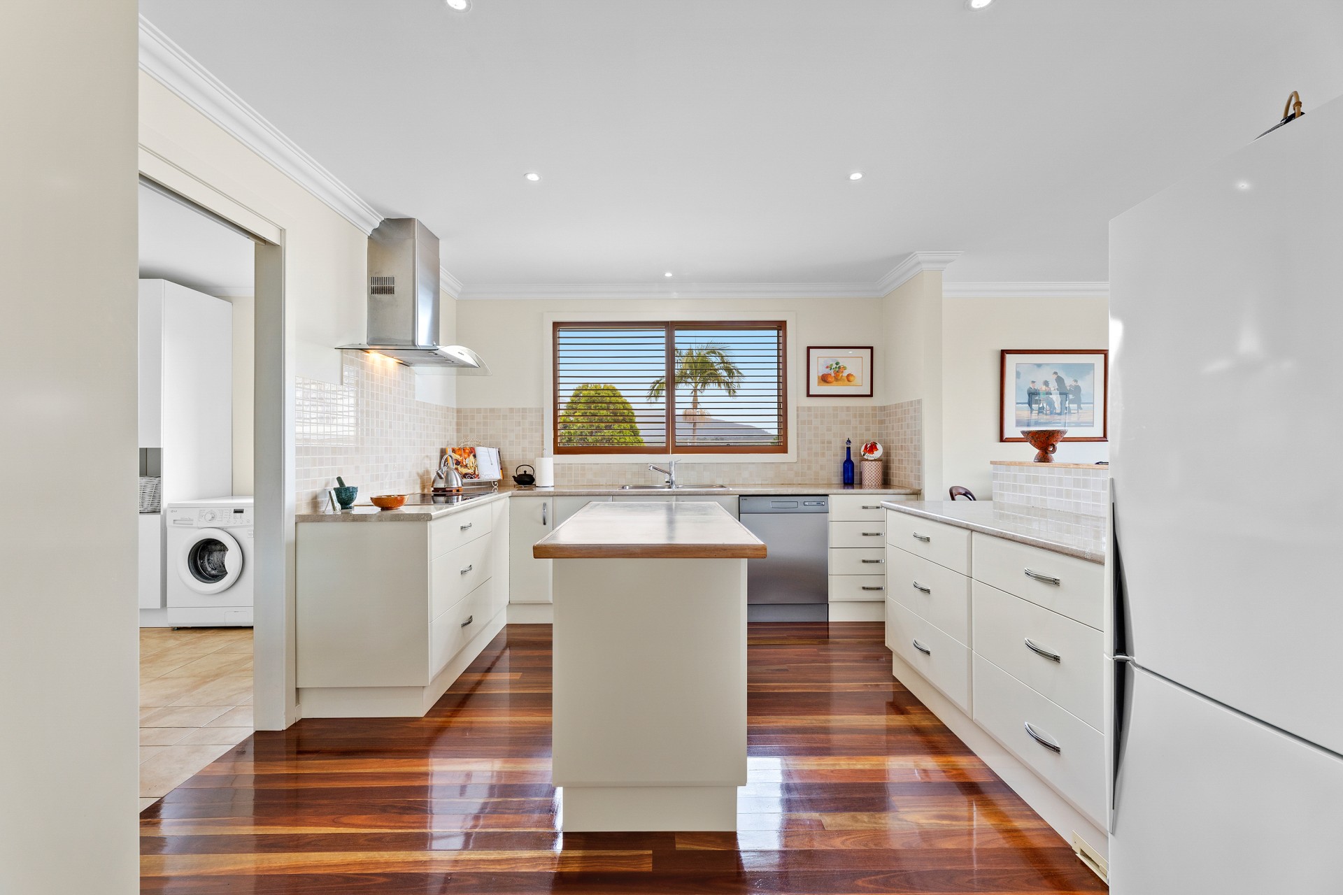 The home comprises three large bedrooms, each with its own bathroom and a downstairs studio/fourth bedroom area provides dual living capability. The double length garage and workshop round out the magnificence of this property.
