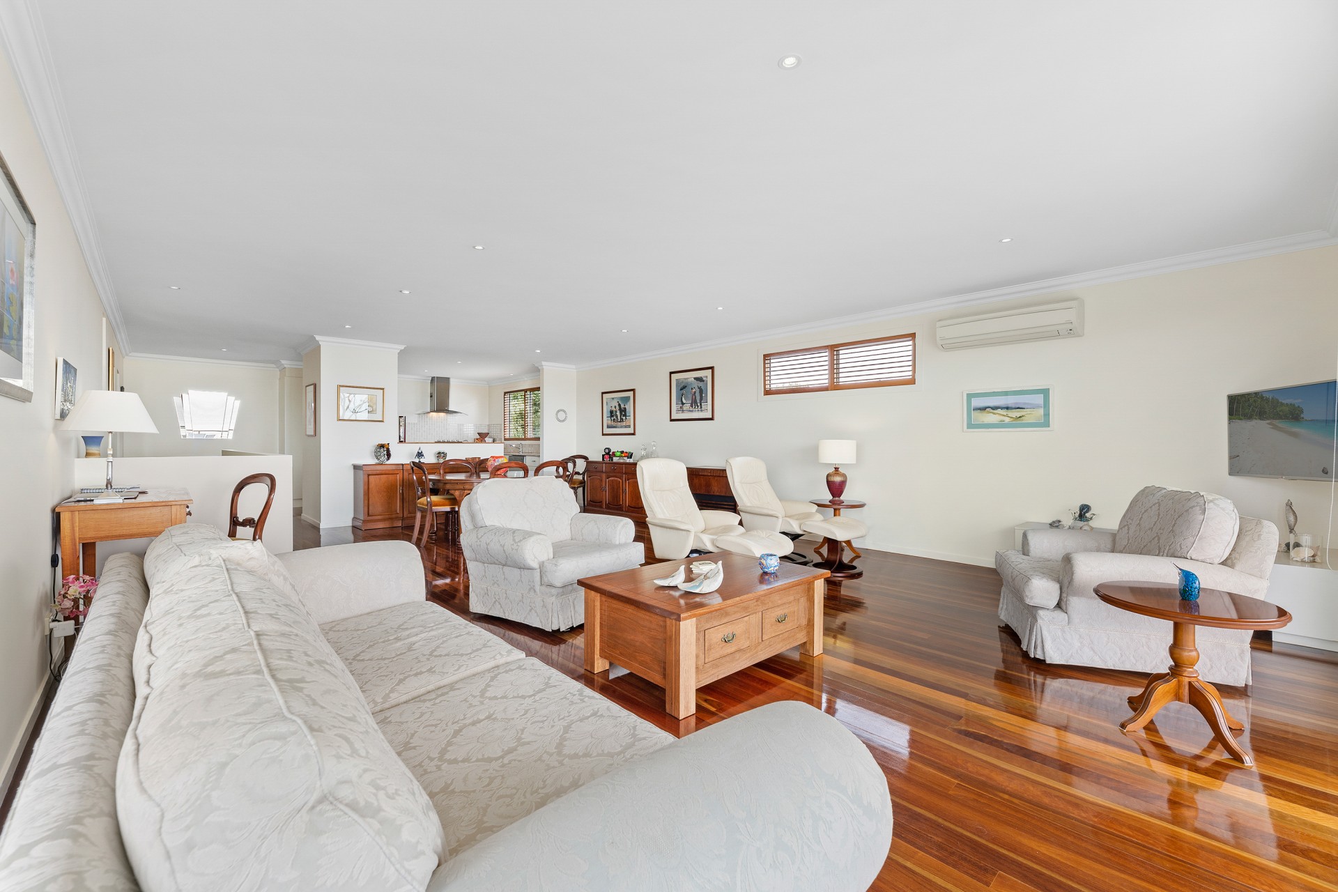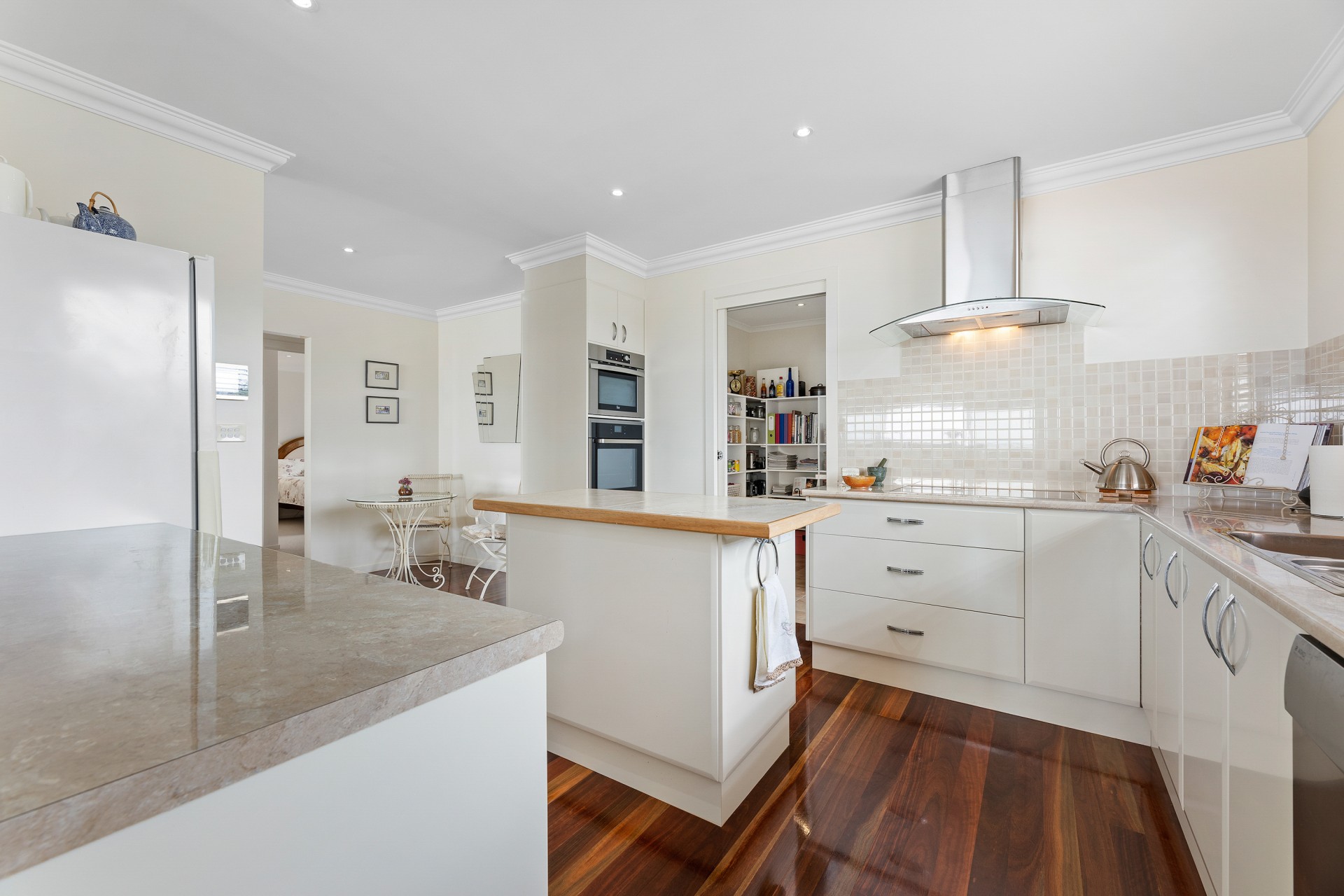 The upper floor houses the main living area and showcases the spectacular coastal outlook. Beautiful spotted gum hardwood flooring, open plan living and modern kitchen with magnificent walk-in butler's pantry will satisfy the most discerning purchaser.