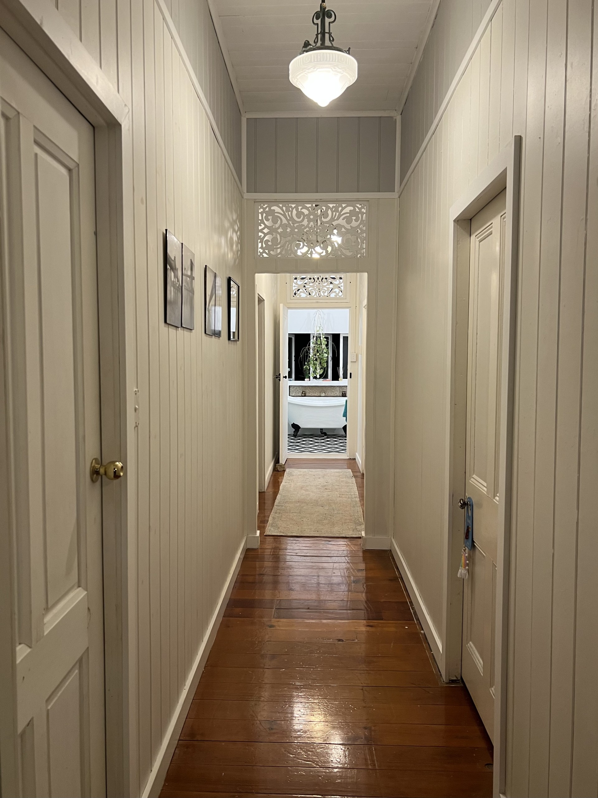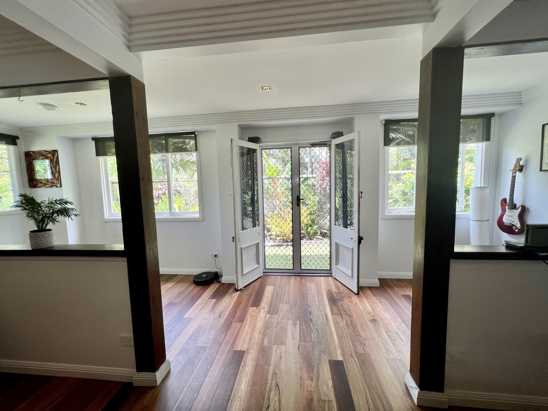 Soaring Ceilings with ornate fretwork and timber floors