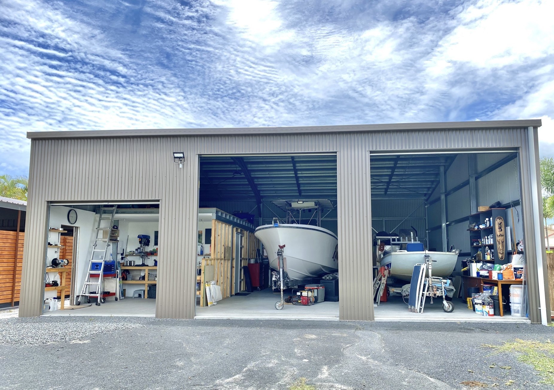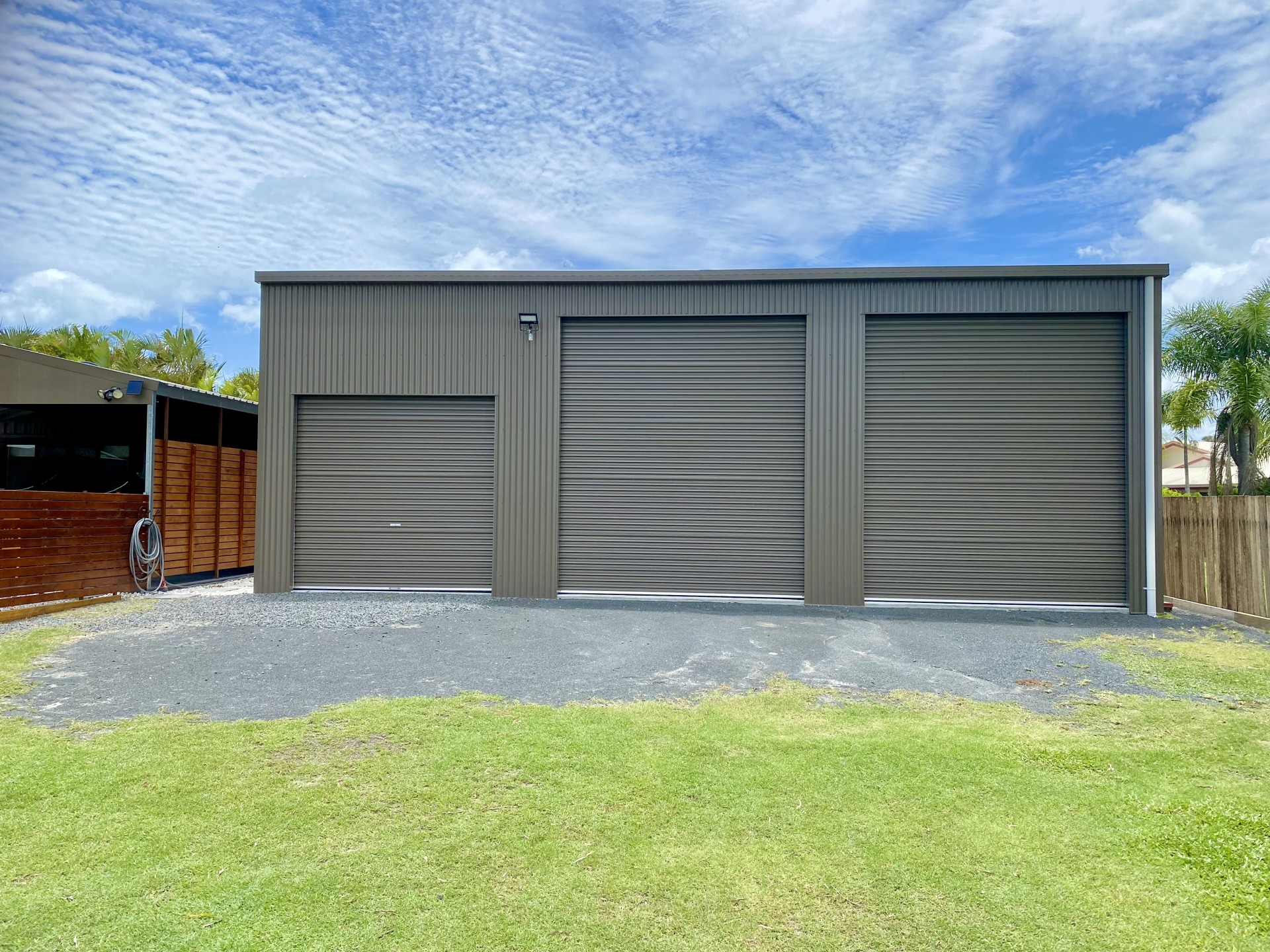 - New shed - 11m wide x 11m length x 4 m high sides (5m height in the middle)