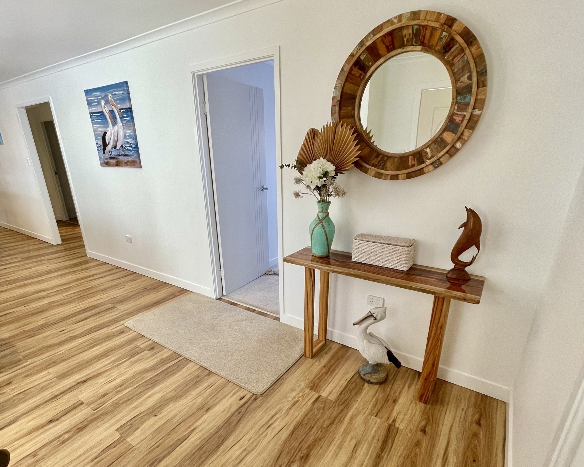 - Timber look, heavy-duty vinyl plank flooring with carpet in bedrooms