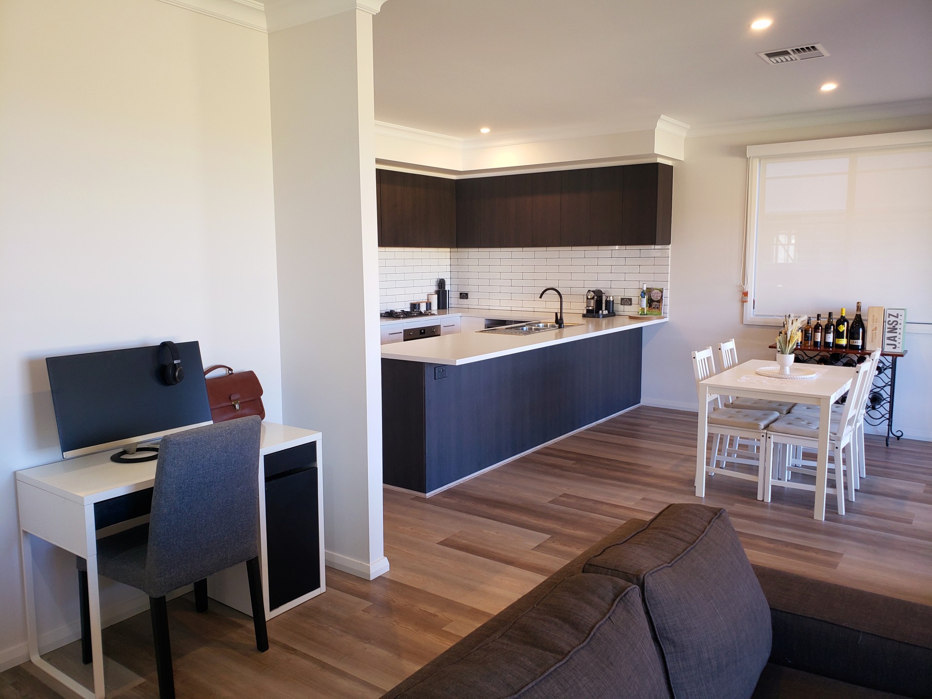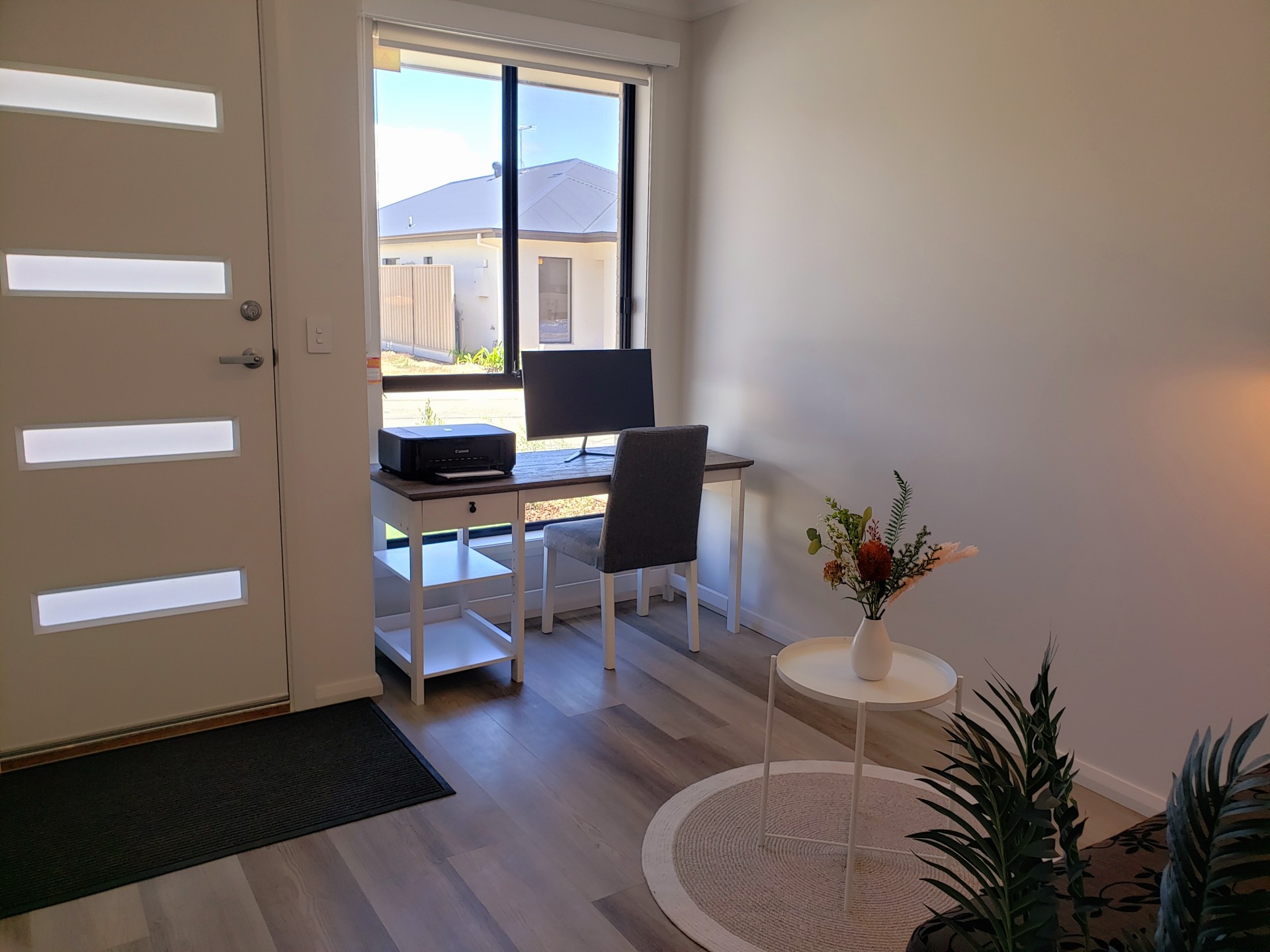 - Hybrid flooring in study and living areas